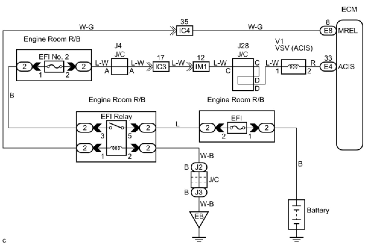 (b) Check the wire harness between the VSV for ACIS connector and the EFI relay.