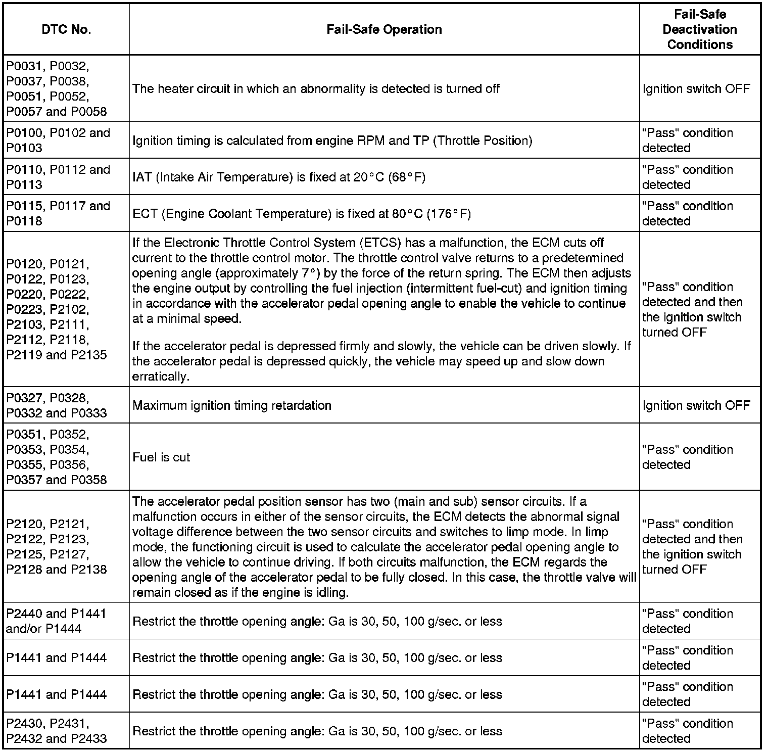 If any of the following codes are recorded, the ECM enters the fail-safe mode.