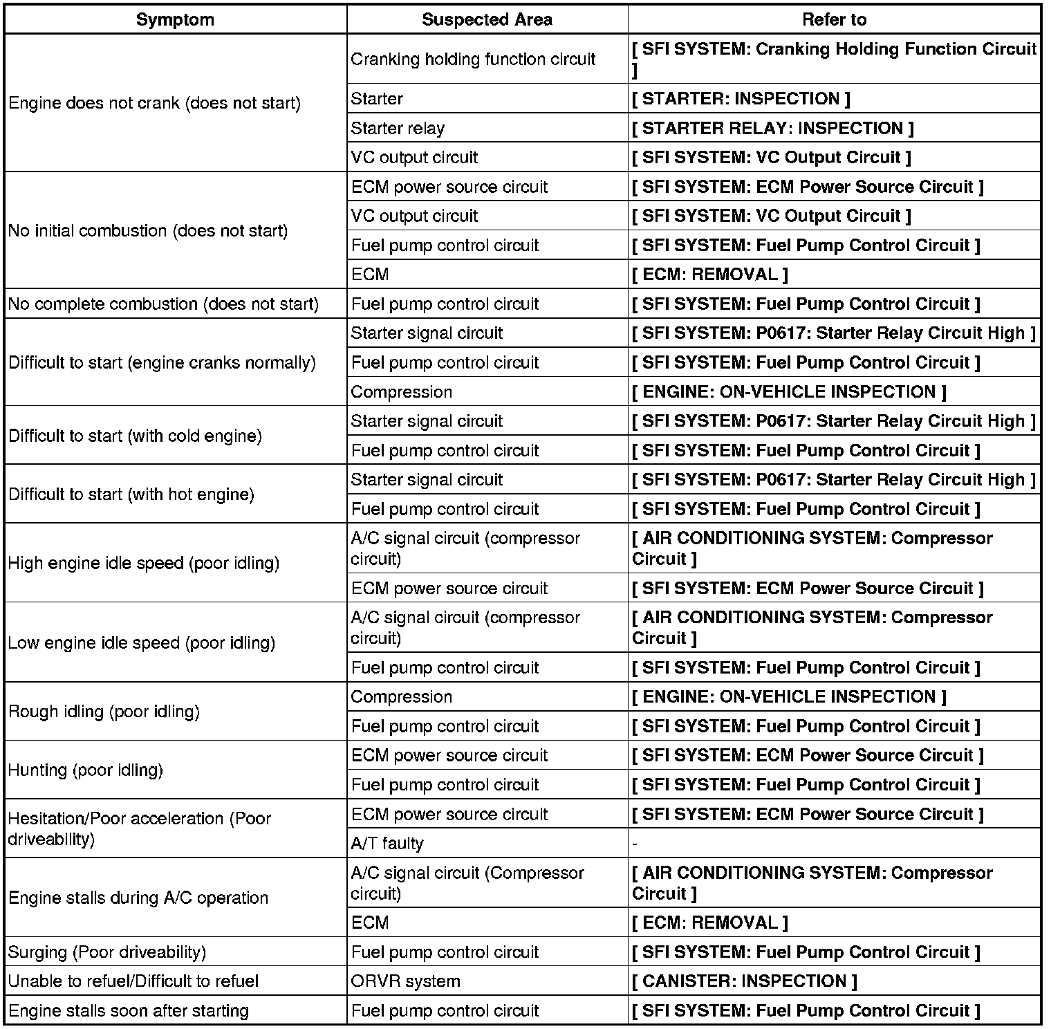 2UZ-FE ENGINE CONTROL SYSTEM: SFI SYSTEM: PROBLEM SYMPTOMS TABLE
