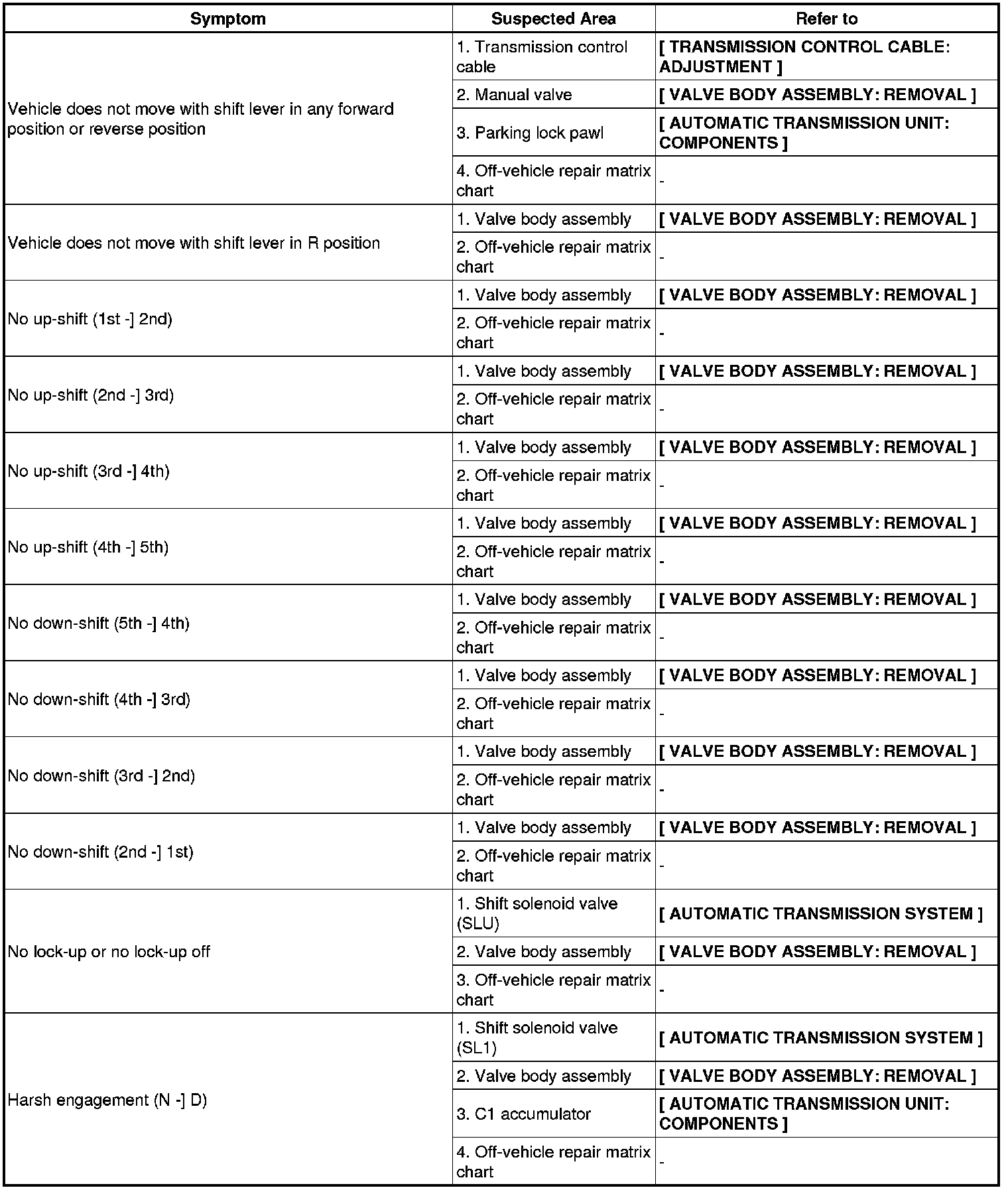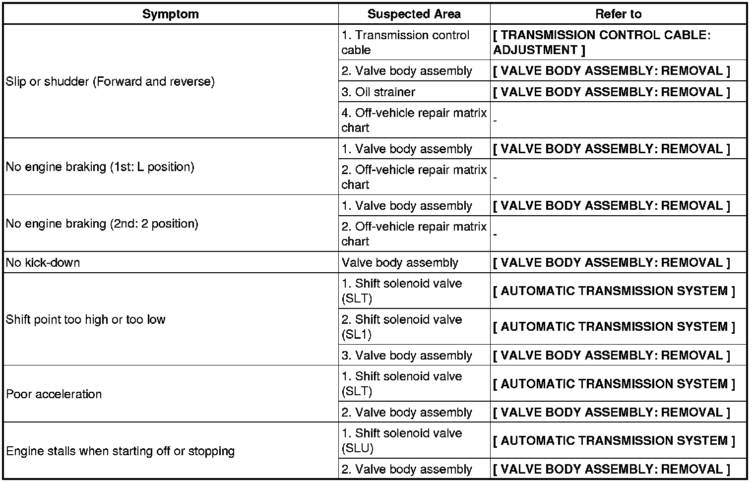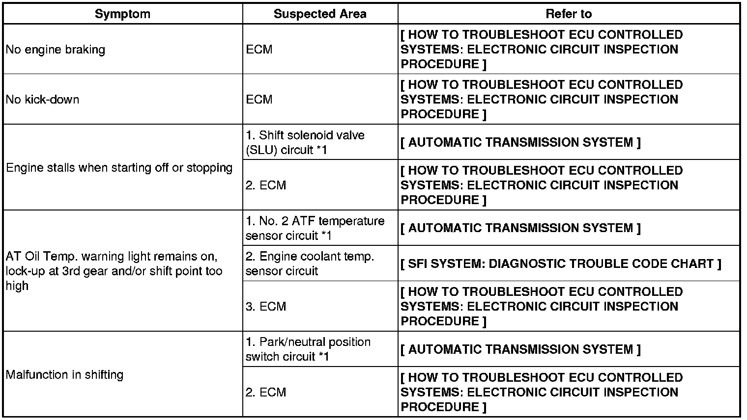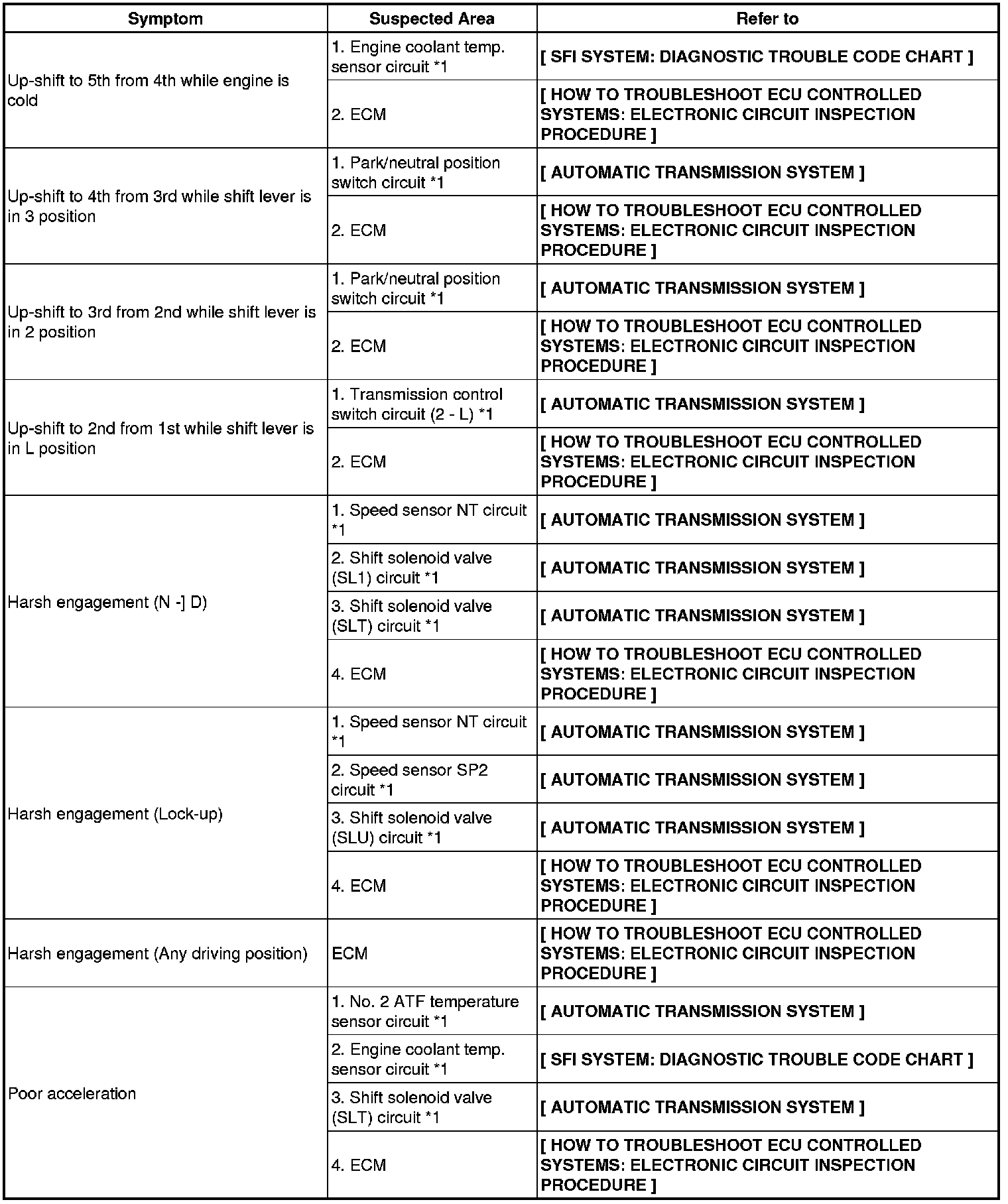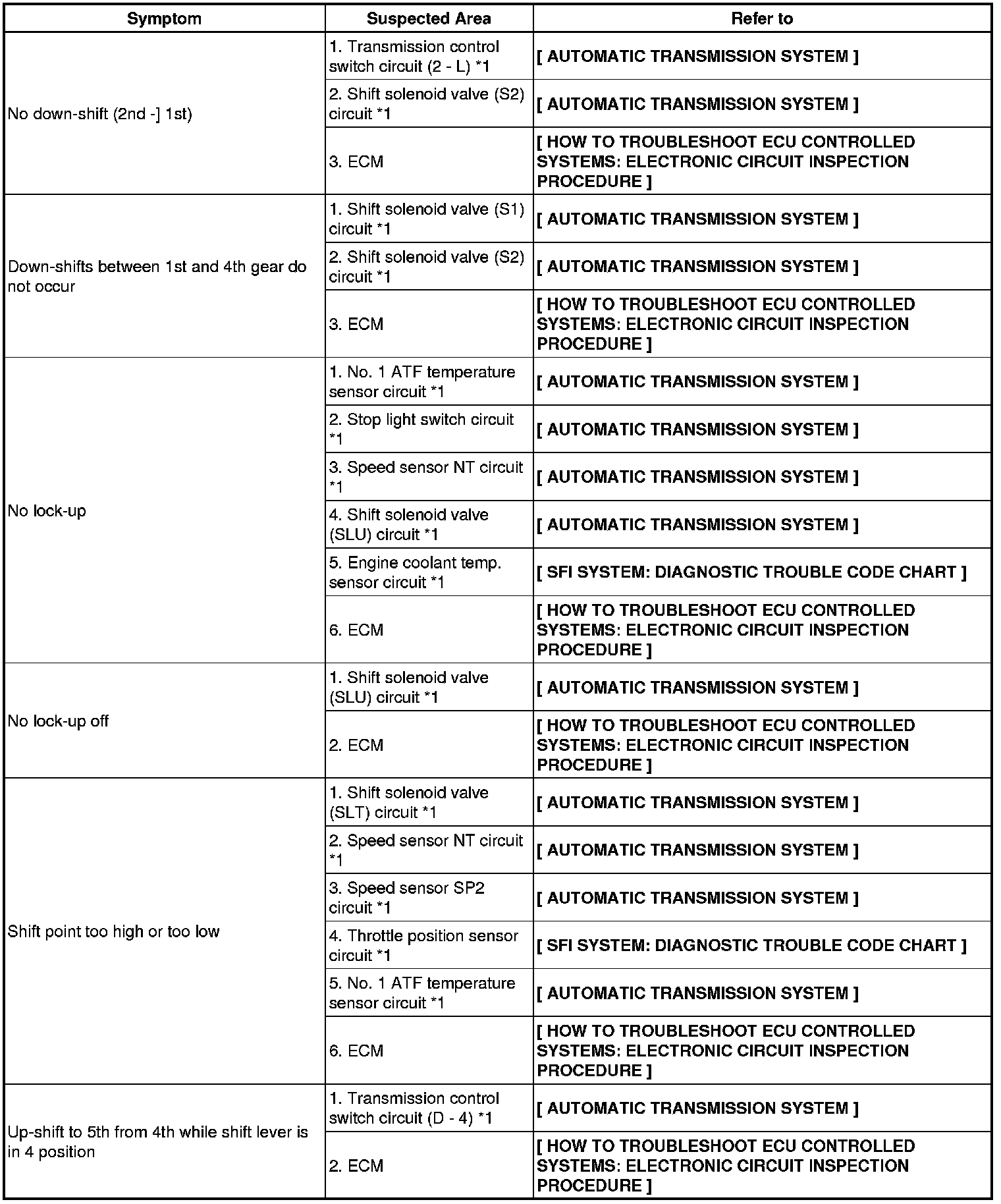 A750E AUTOMATIC TRANSMISSION: AUTOMATIC TRANSMISSION SYSTEM (for 2UZ-FE): PROBLEM SYMPTOMS TABLE