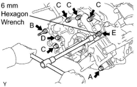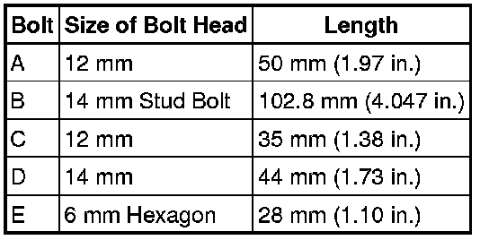 For bolts A, B, C and E - Torque 16 Nm (160 kgf-cm, 11 ft-lbf)