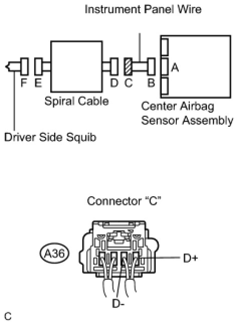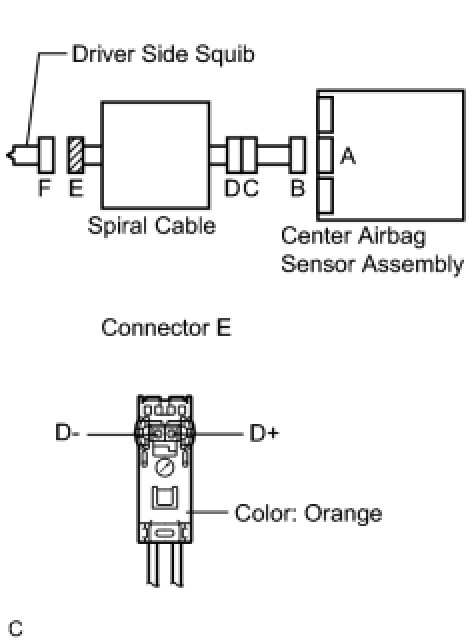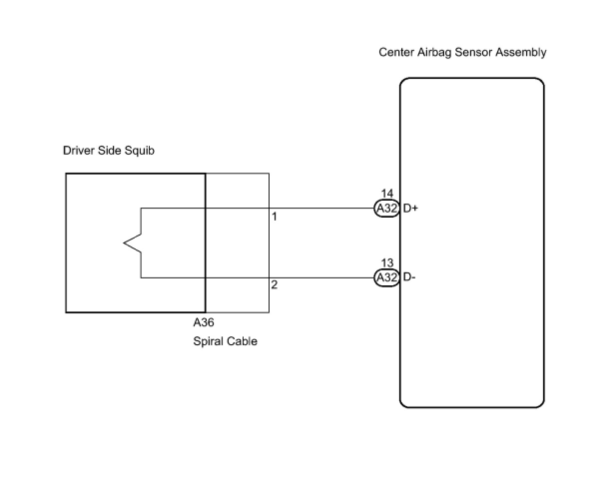 The driver side squib circuit consists of the center airbag sensor assembly, the spiral cable and the steering pad.