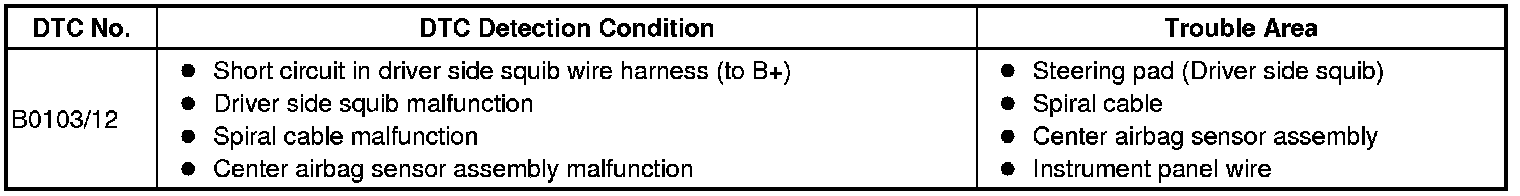 SUPPLEMENTAL RESTRAINT SYSTEM: AIRBAG SYSTEM: B0103/12: Short to B+ in Driver Side Squib Circuit