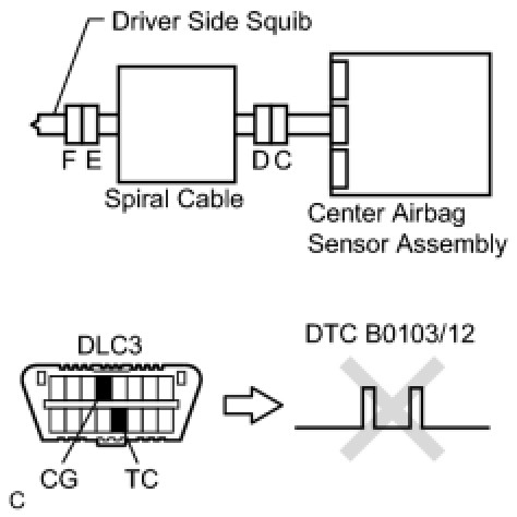 HINT: Codes other than DTC B0103/12 may be output at this time, but they are not related to this check.
