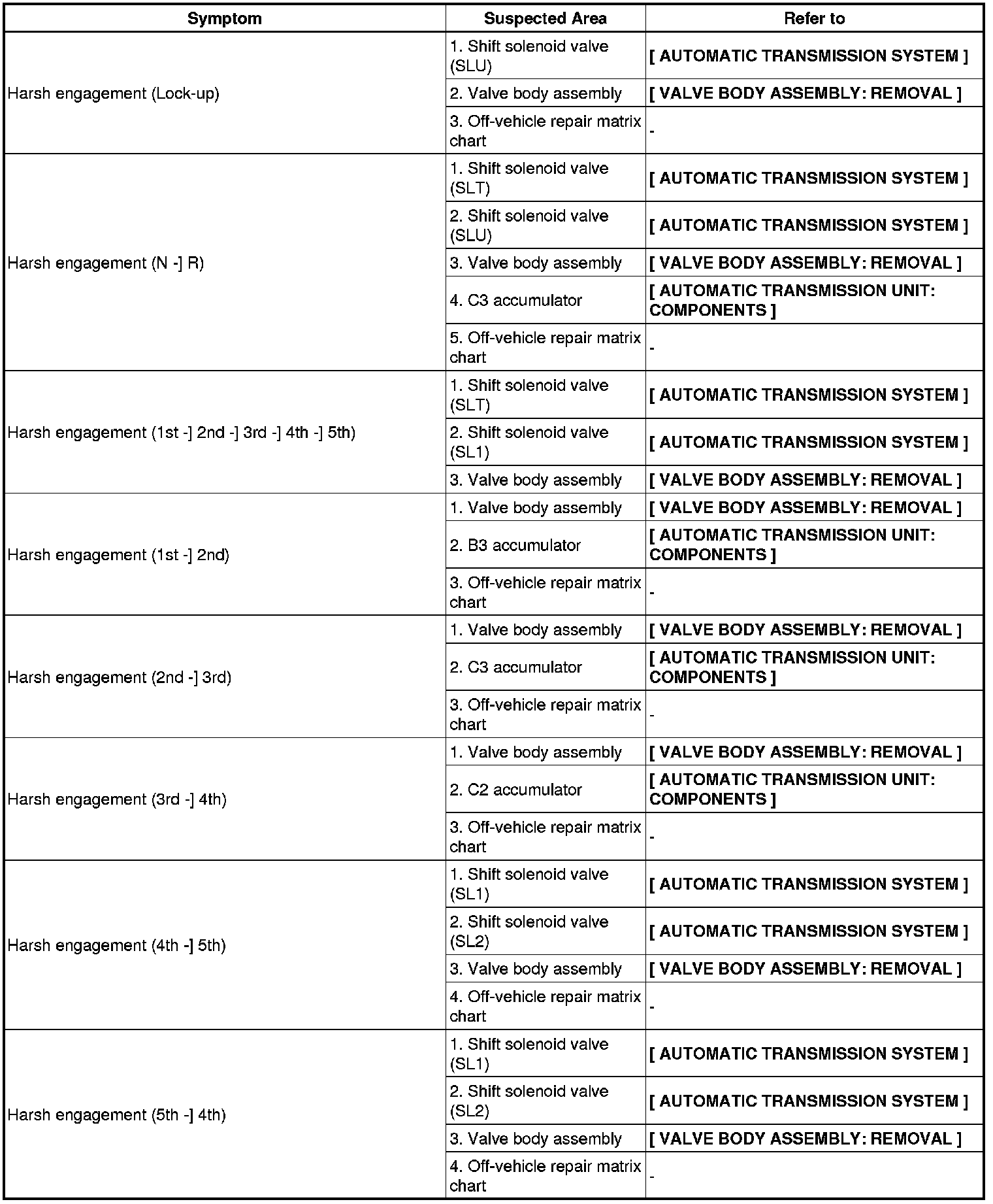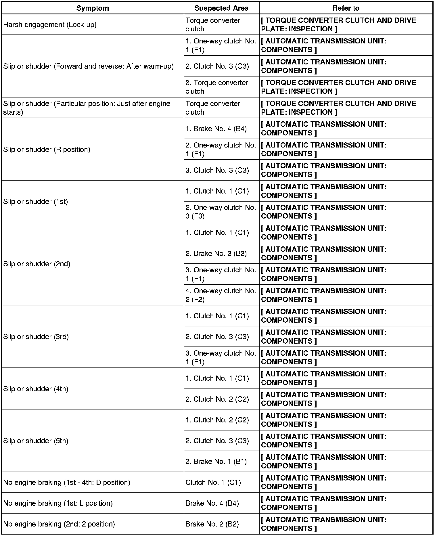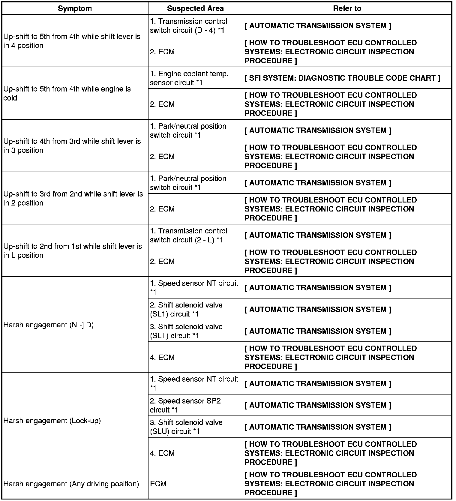 A750F AUTOMATIC TRANSMISSION: AUTOMATIC TRANSMISSION SYSTEM (for 1GR-FE): PROBLEM SYMPTOMS TABLE