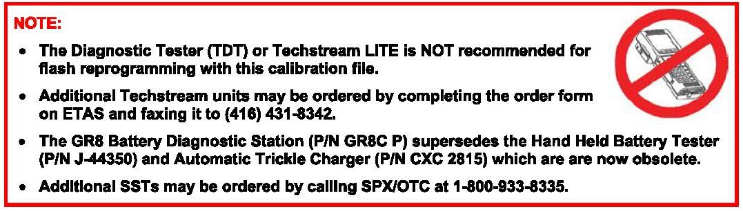 ^ The GR8 Battery Diagnostic Station MUST be used in Power Supply Mode to maintain battery voltage at 13.5 volts while flash reprogramming the vehicle.