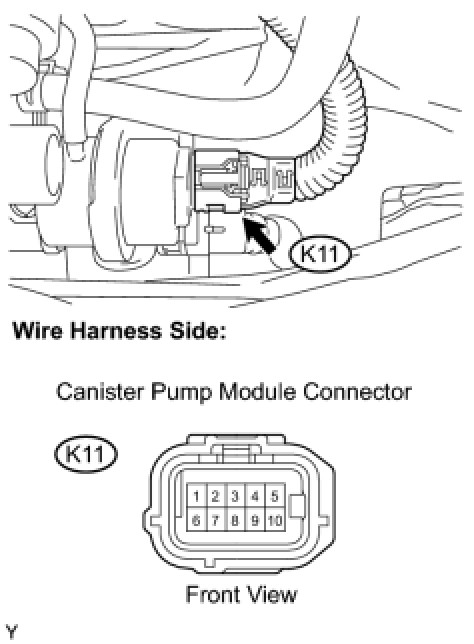 NOTE: When replacing the canister, check the canister pump module interior and related pipes for water, fuel and other liquids. If liquids are present, check for disconnections and/or cracks in the following: 1) the pipe from the air inlet port to the canister pump module; 2) the canister filter; and 3) the fuel tank vent hose.