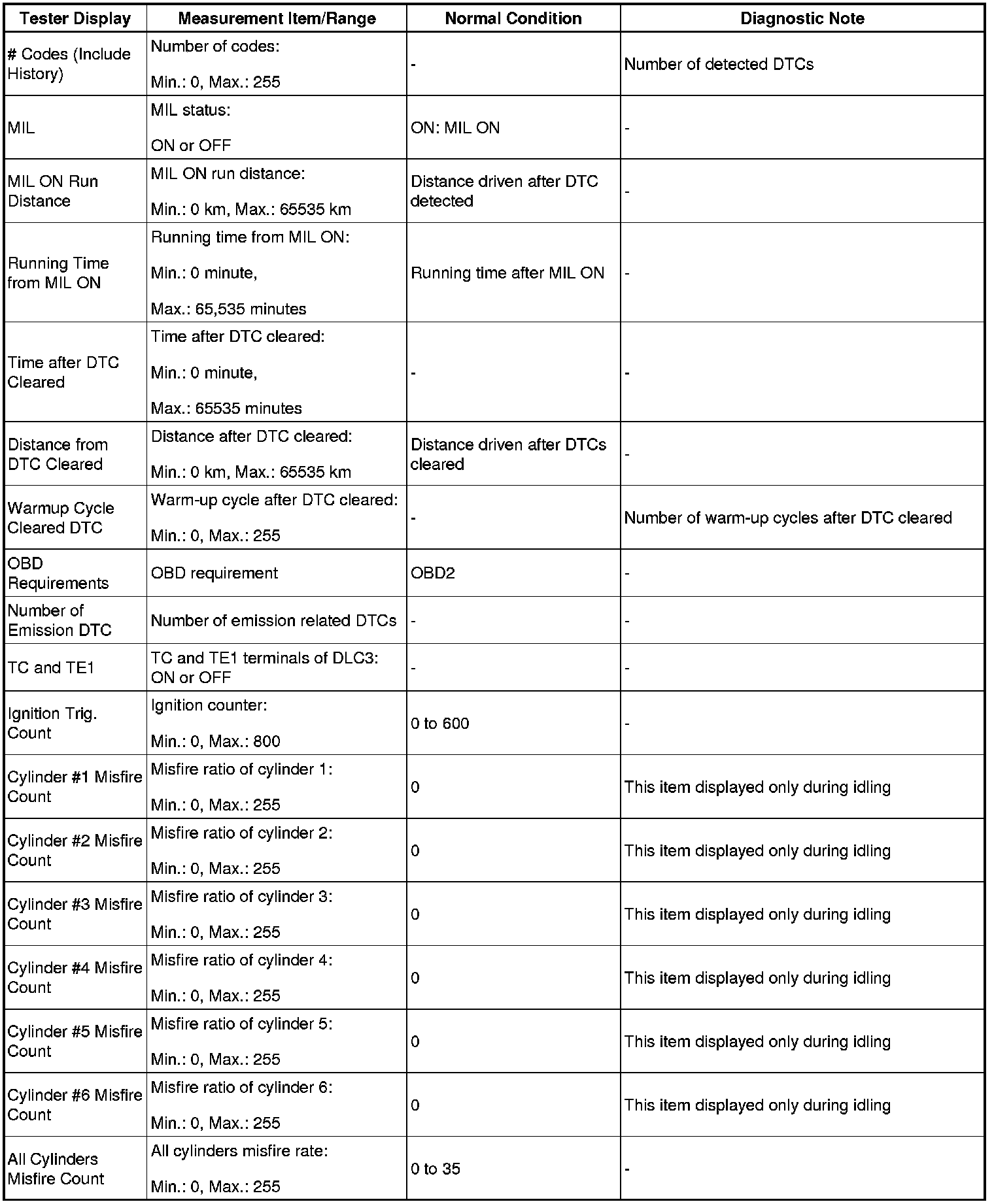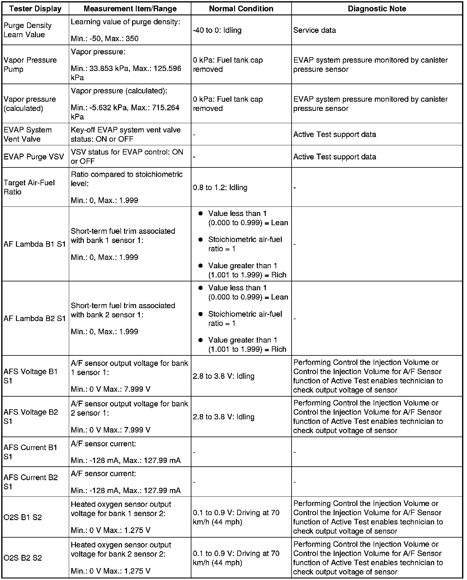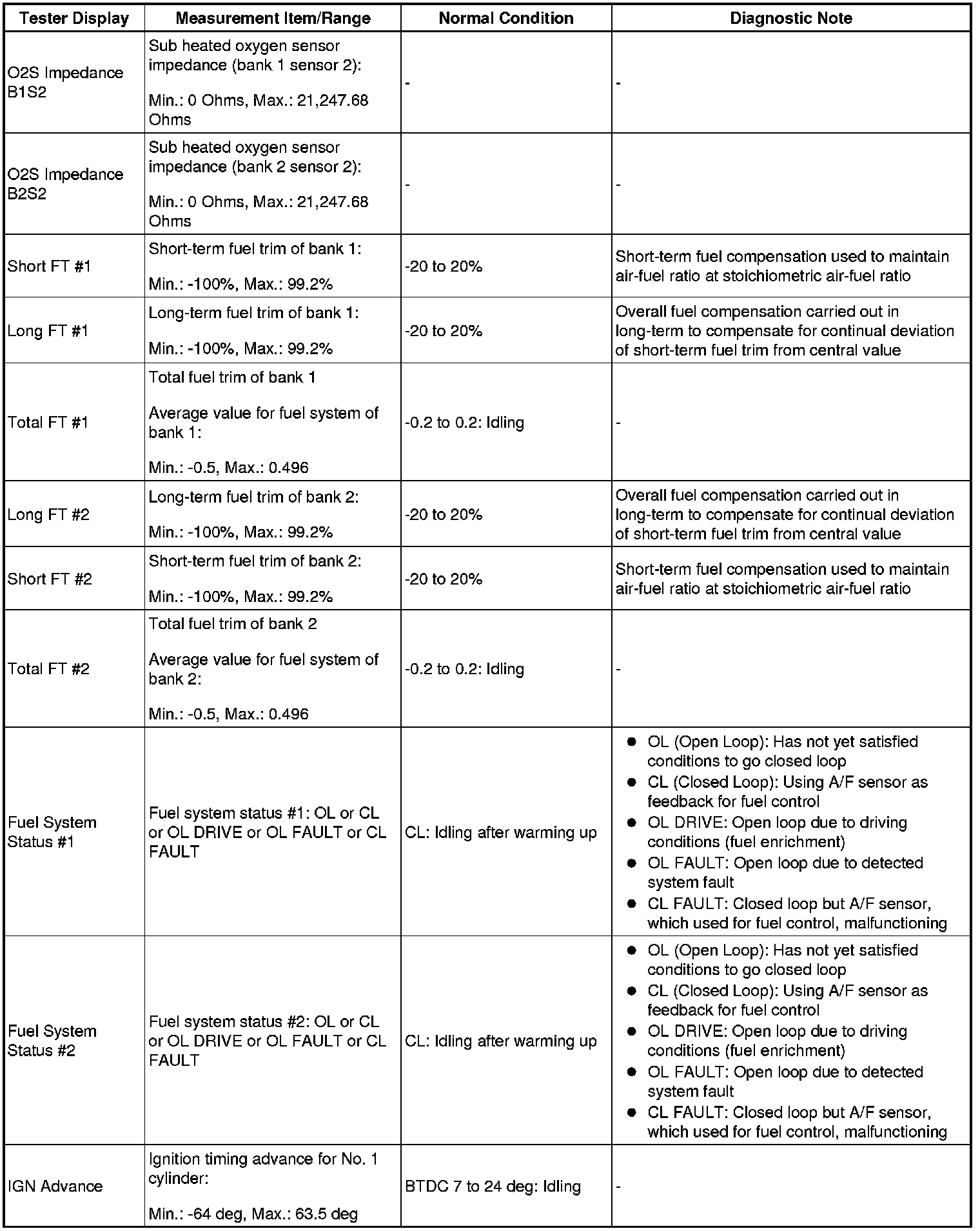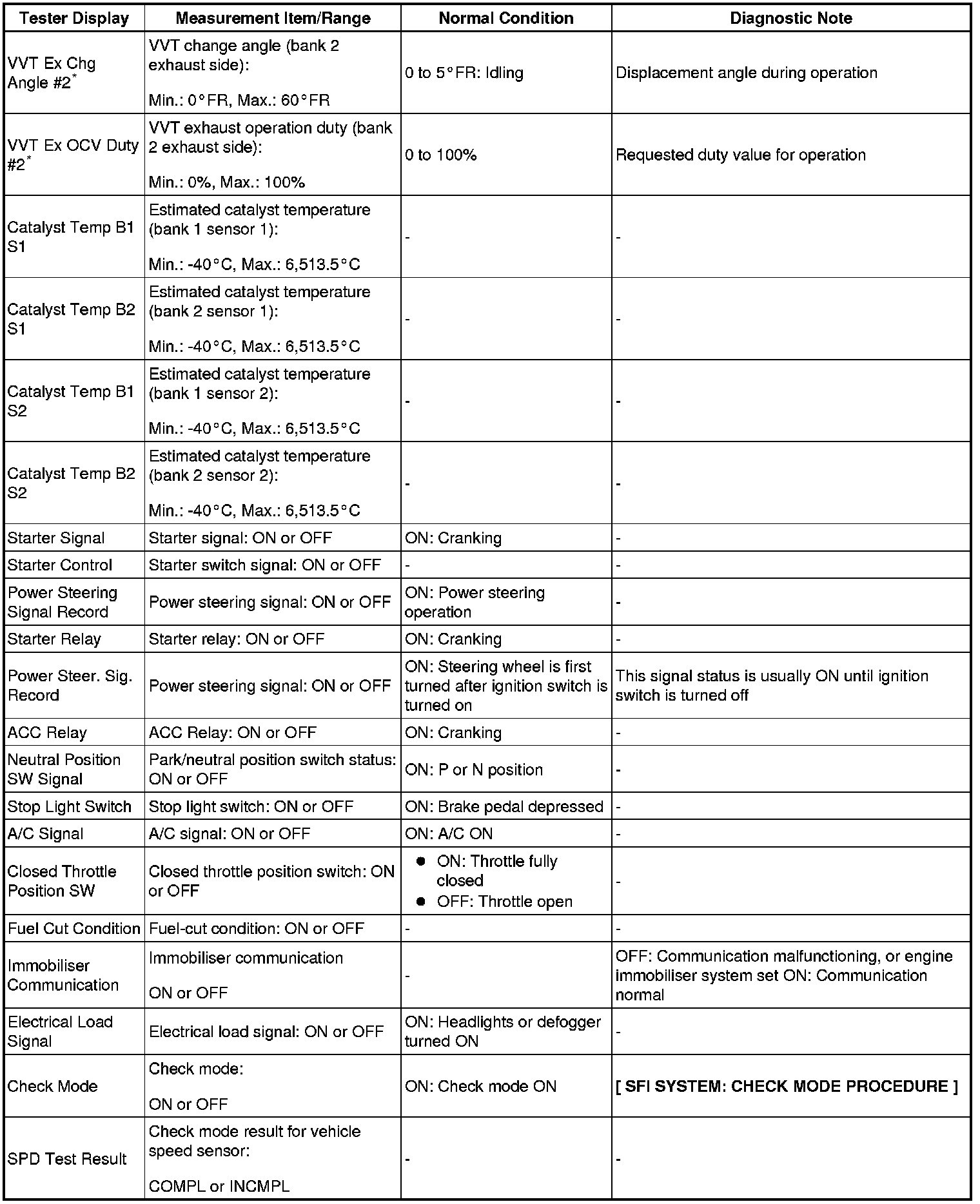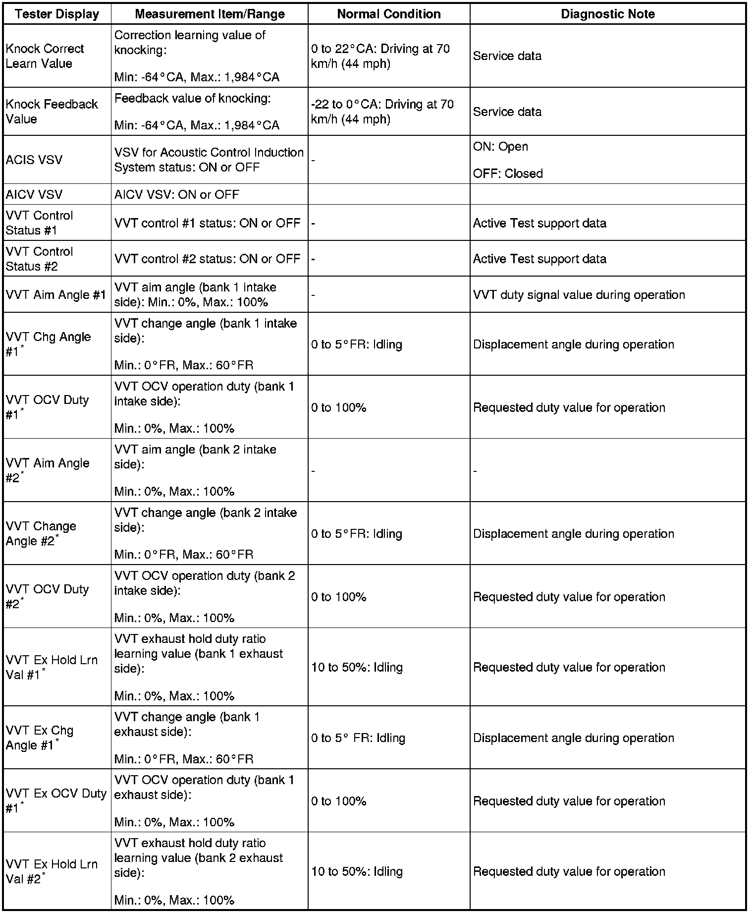 - *: Data List values are displayed only when performing the following Active Tests: Control the VVT Linear (Bank1), Control the VVT Linear (Bank2), Control the VVT Exhaust Linear (Bank1) and Control the VVT Exhaust Linear (Bank2). For other Active Tests, the Data List value will be 0.