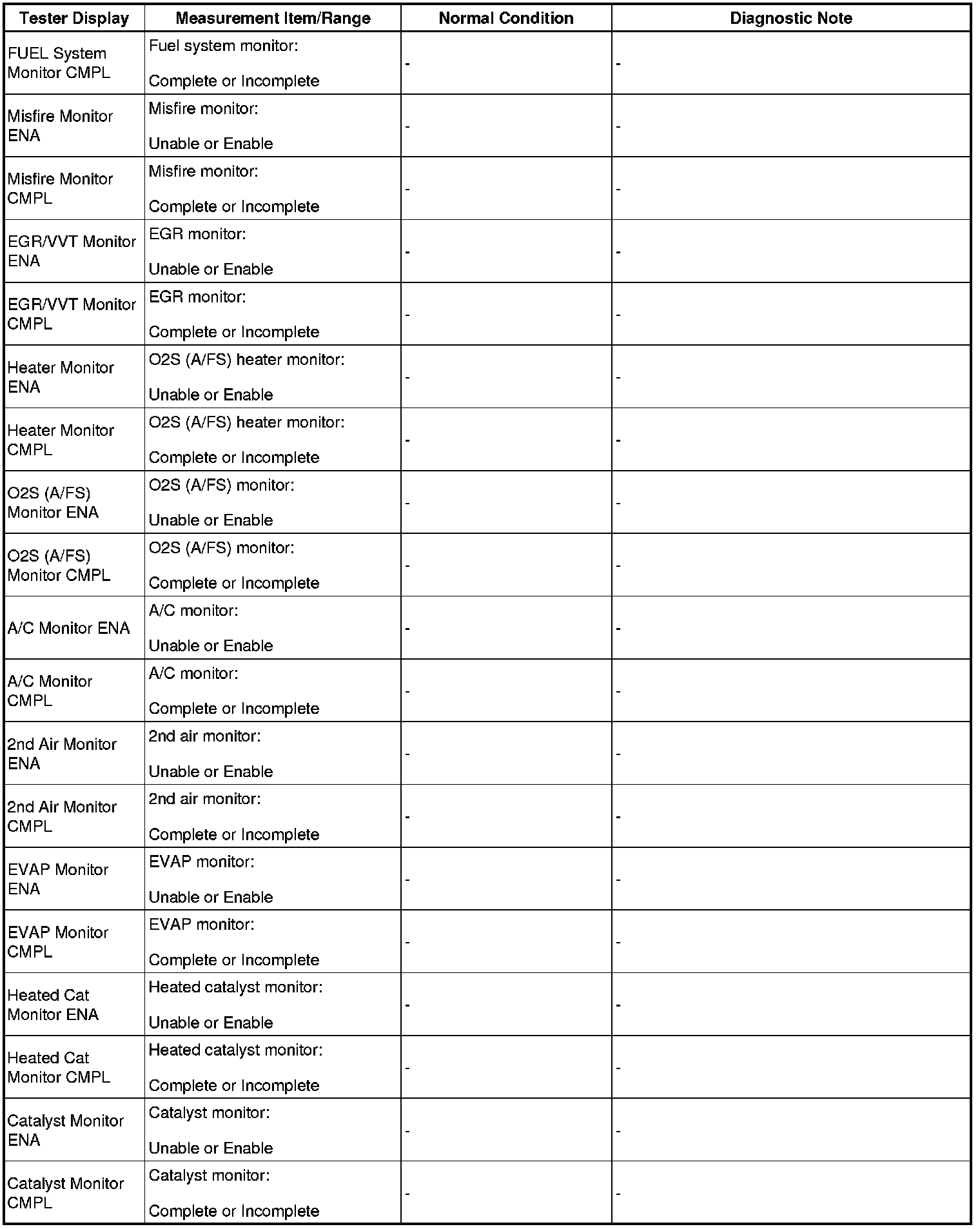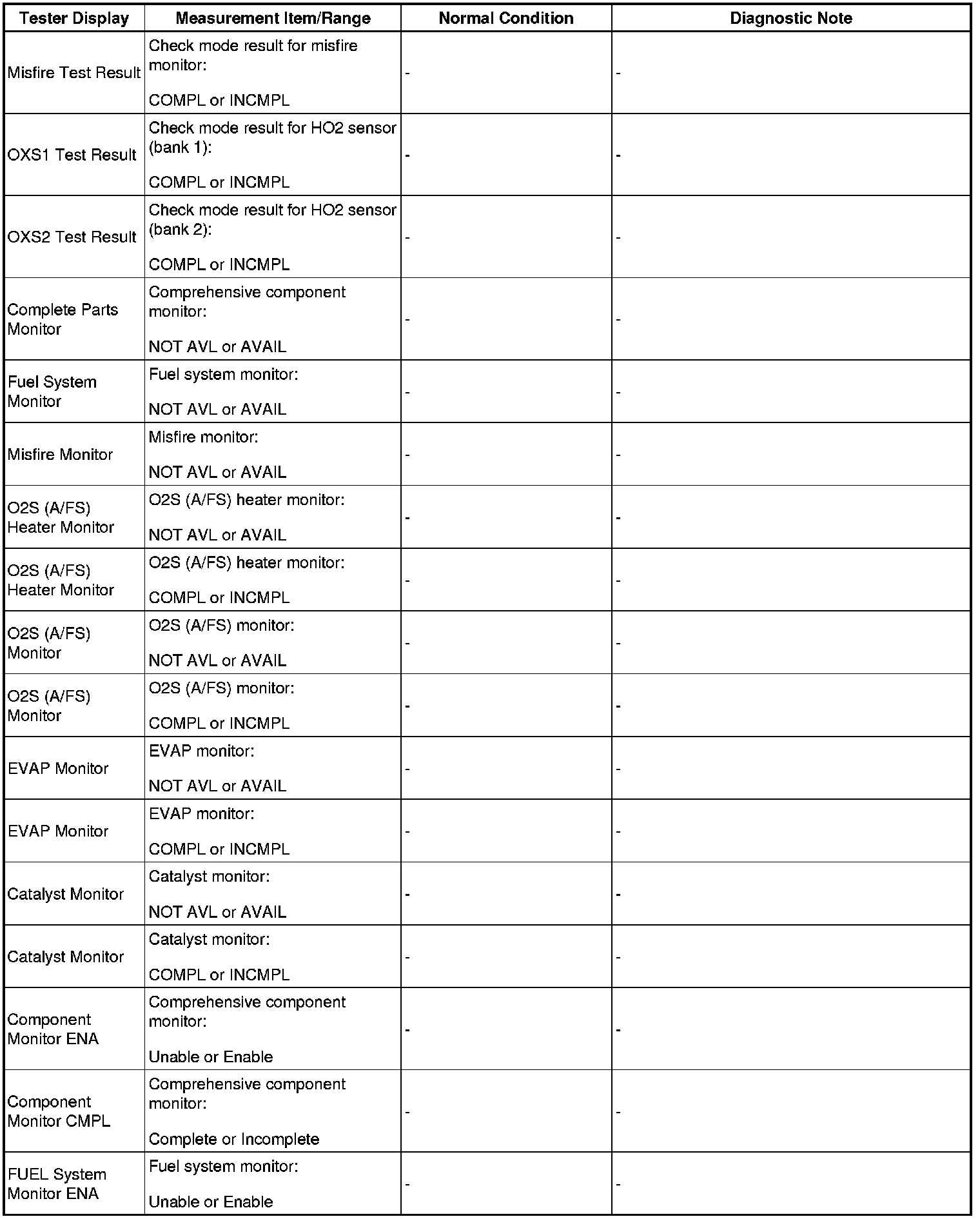 (e) Perform the System Check by referring to the table below.