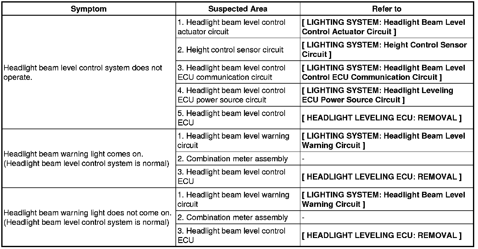 LIGHTING: LIGHTING SYSTEM: PROBLEM SYMPTOMS TABLE
