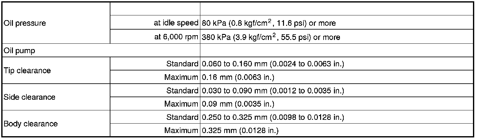 SERVICE SPECIFICATIONS: 2GR-FE LUBRICATION: SERVICE DATA