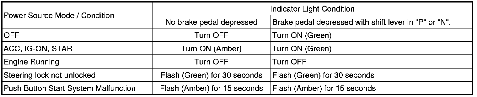 - The amber and green LEDs are for the indicator lights. The driver can check the present power source mode and whether the engine can start or not in accordance with the illumination state of the indicator light.