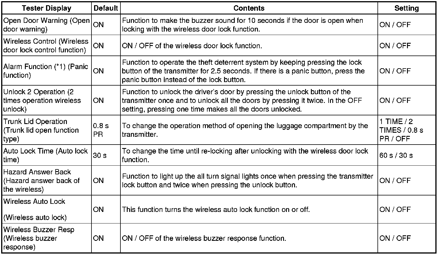 - The function only switches the entry unlock of the smart key system. It does not switch the unlocking of the wireless door lock remote control.