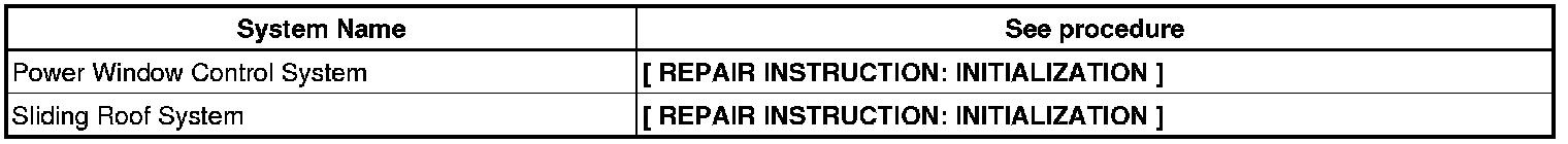 NOTE: When disconnecting the battery cable from the negative (-) battery terminal, initialize the following systems after the cable is reconnected.