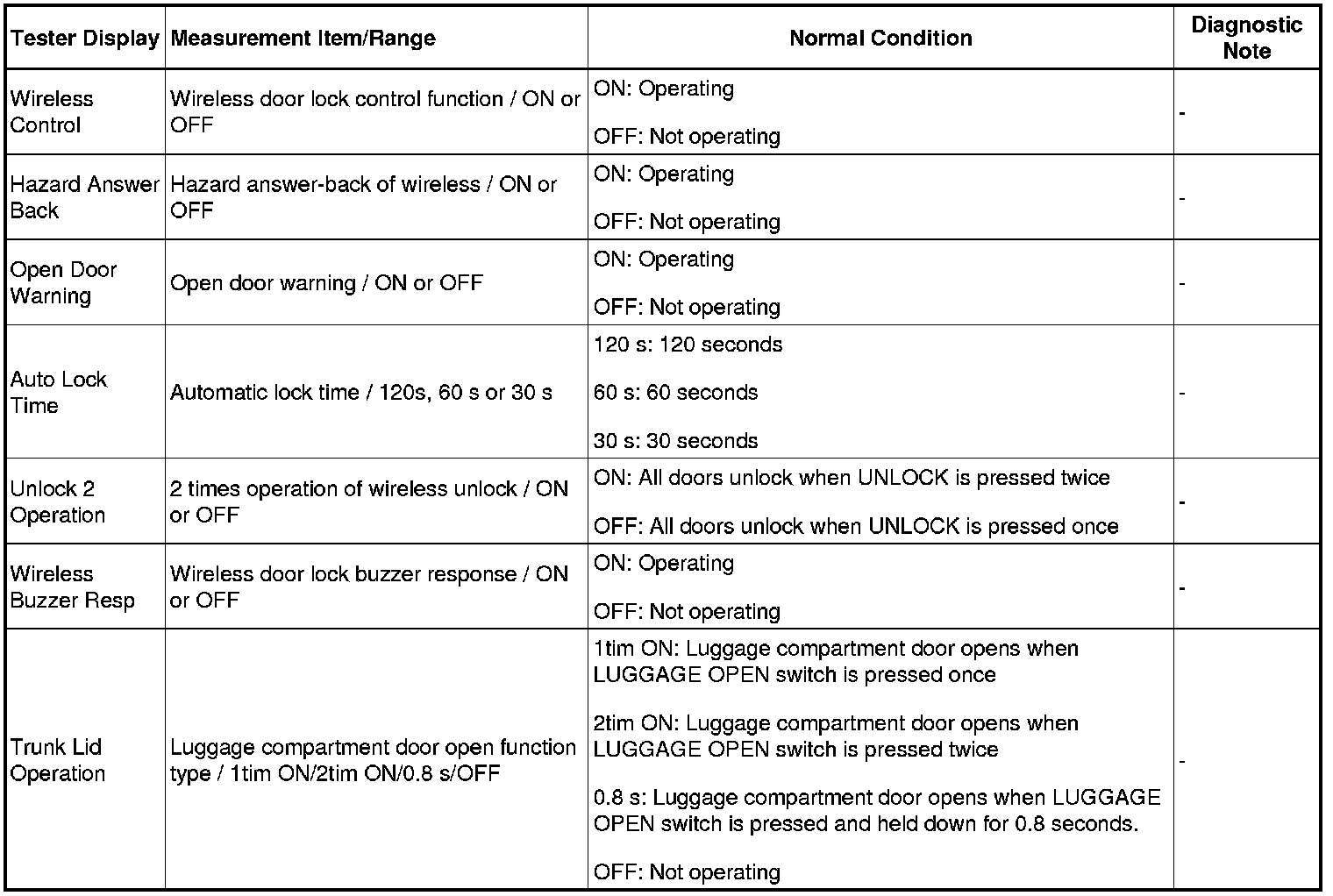 DOOR LOCK: WIRELESS DOOR LOCK CONTROL SYSTEM: DATA LIST / ACTIVE TEST