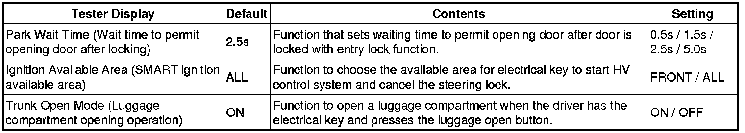 2. CUSTOMIZING FUNCTION WITHOUT TECHSTREAM (Entry Unlock Mode Switching Function)