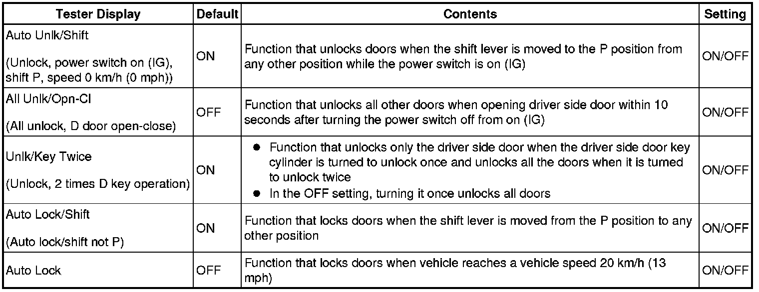 DOOR LOCK: POWER DOOR LOCK CONTROL SYSTEM: CUSTOMIZE PARAMETERS