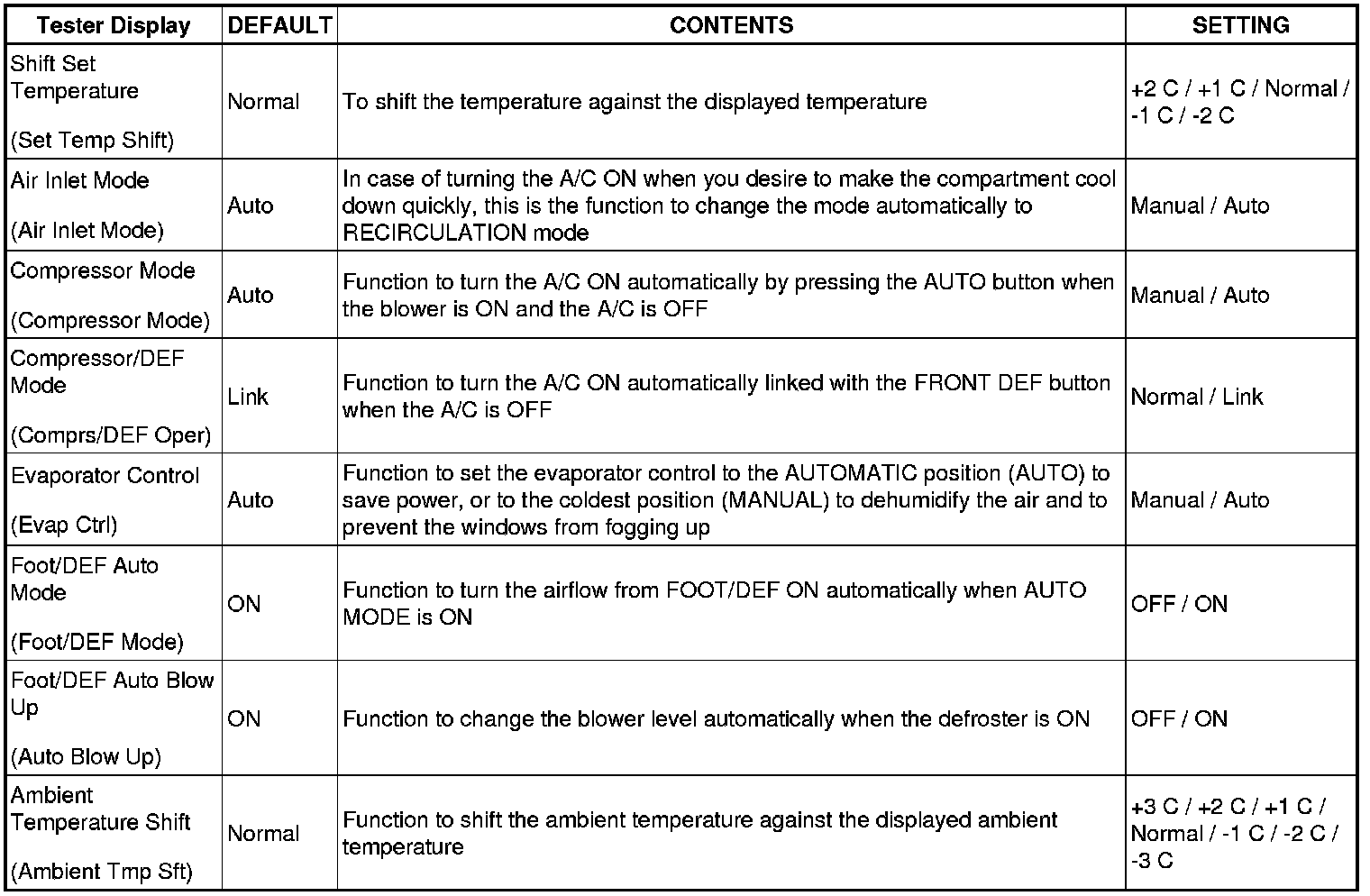 AIR CONDITIONING: AIR CONDITIONING SYSTEM: CUSTOMIZE PARAMETERS