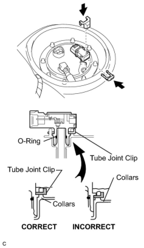 - After installing the tube joint clip, check that the fuel tube joint is pulled off.