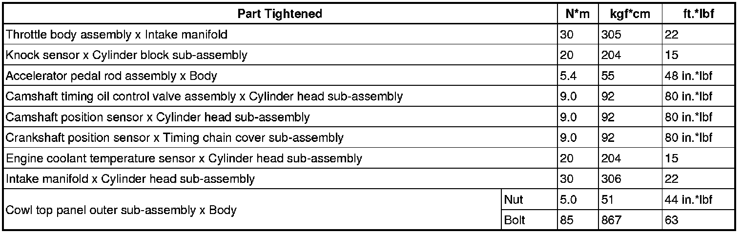 SERVICE SPECIFICATIONS: 2AZ-FXE ENGINE CONTROL SYSTEM: TORQUE SPECIFICATIONS