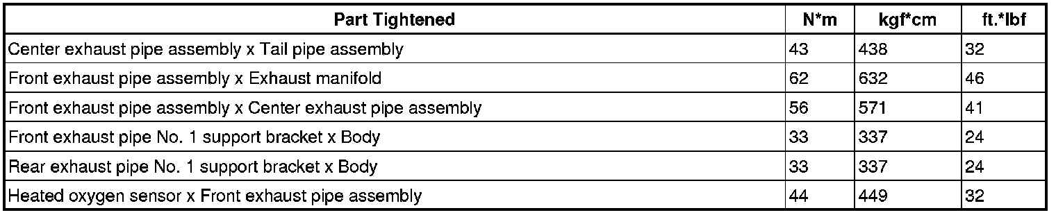 SERVICE SPECIFICATIONS: 2AZ-FXE EXHAUST: TORQUE SPECIFICATIONS