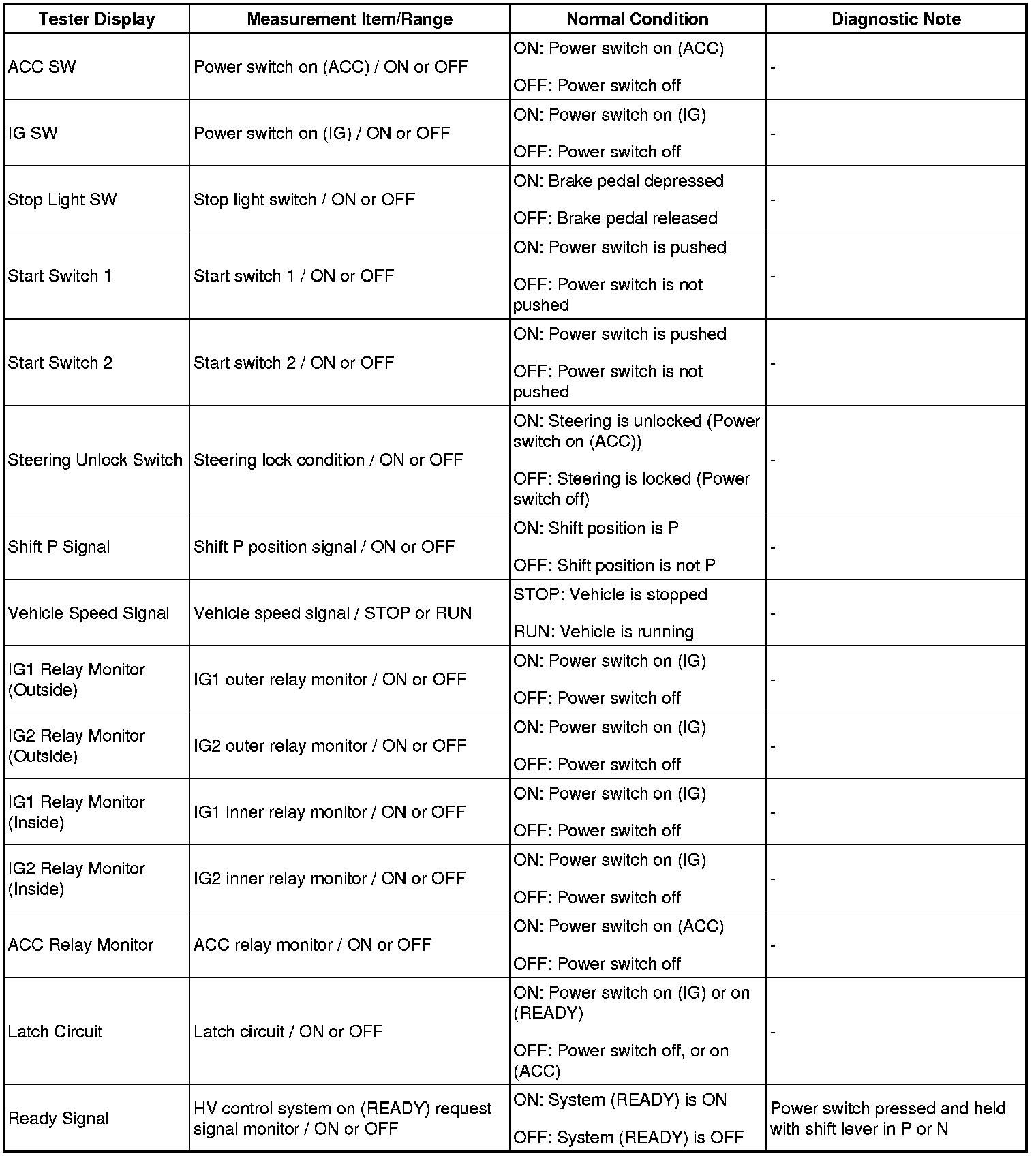 HINT: Using Techstream to read the Data List allows the values or states of switches, sensors, actuators and other items to be read without removing any parts. This non-intrusive inspection can be very useful as intermittent conditions or signals may be discovered before parts or wiring is disturbed. Reading the DATA LIST information early in troubleshooting is one way to save diagnostic time.