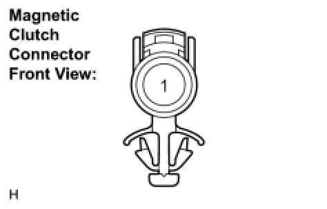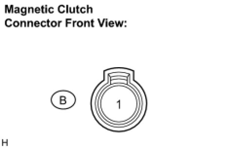 (b) When connector terminal 1 is connected to the positive (+) battery terminal, check that the following occurs: 1) the magnetic clutch's operating sound can be heard, and 2) the magnetic clutch's hub and rotor lock.