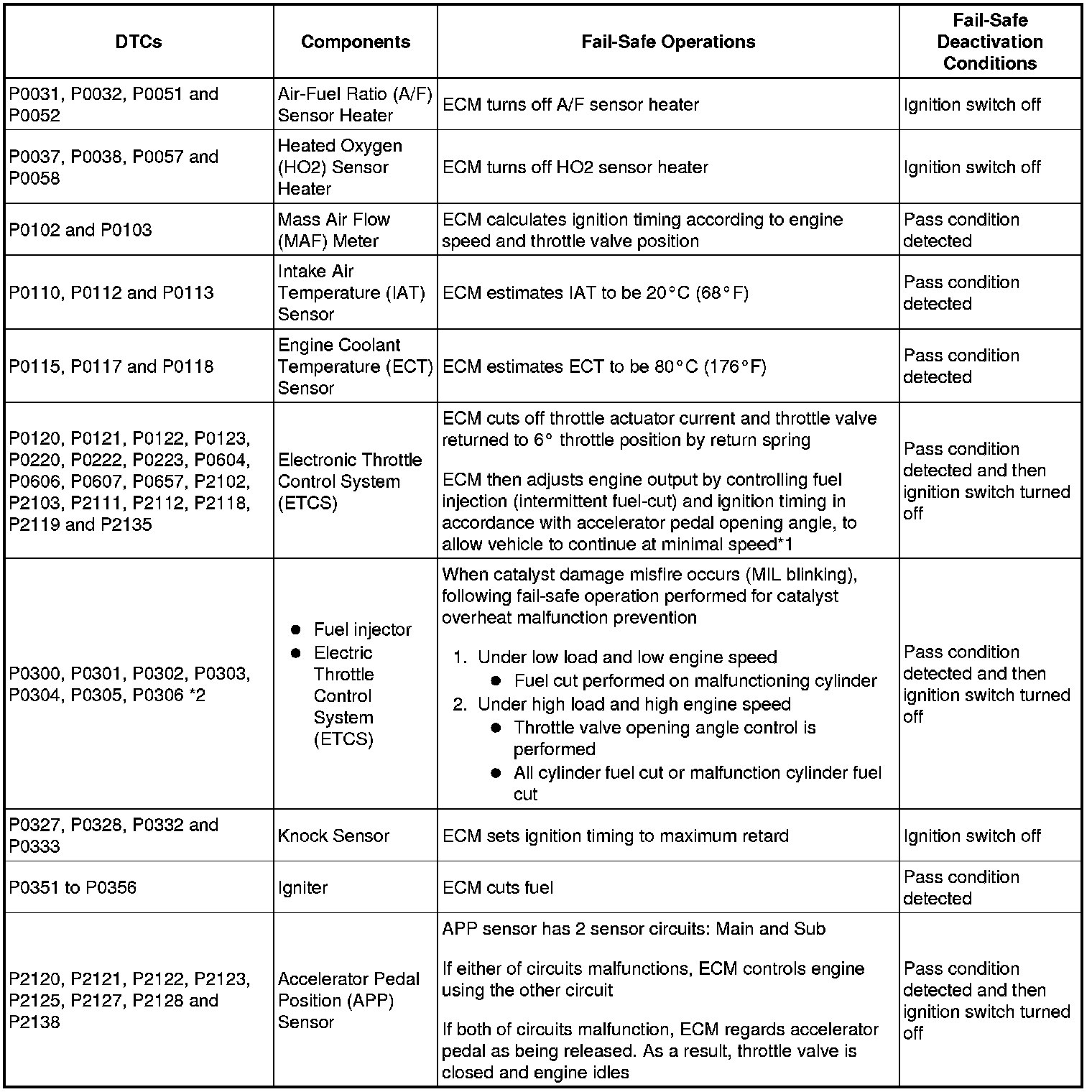 - *2: Misfire related fail-safe operations occur when catalyst overheat malfunction occur.