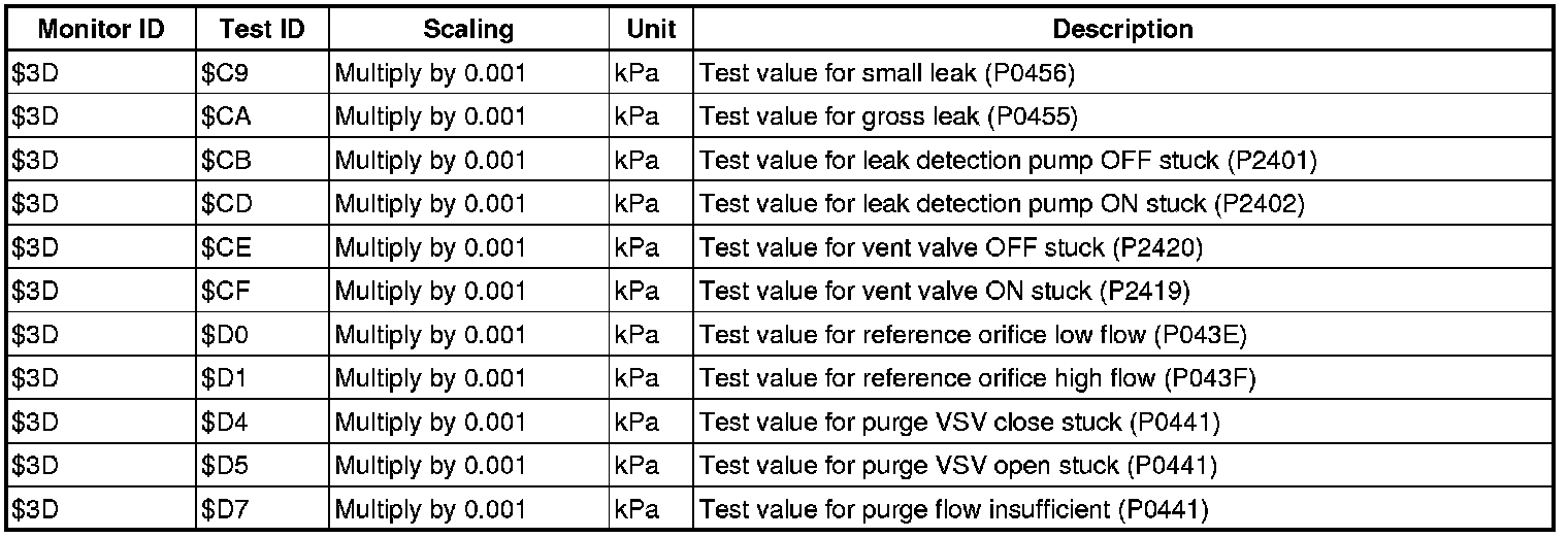 If you use a generic scan tool, multiply the test value by the scaling value listed below.