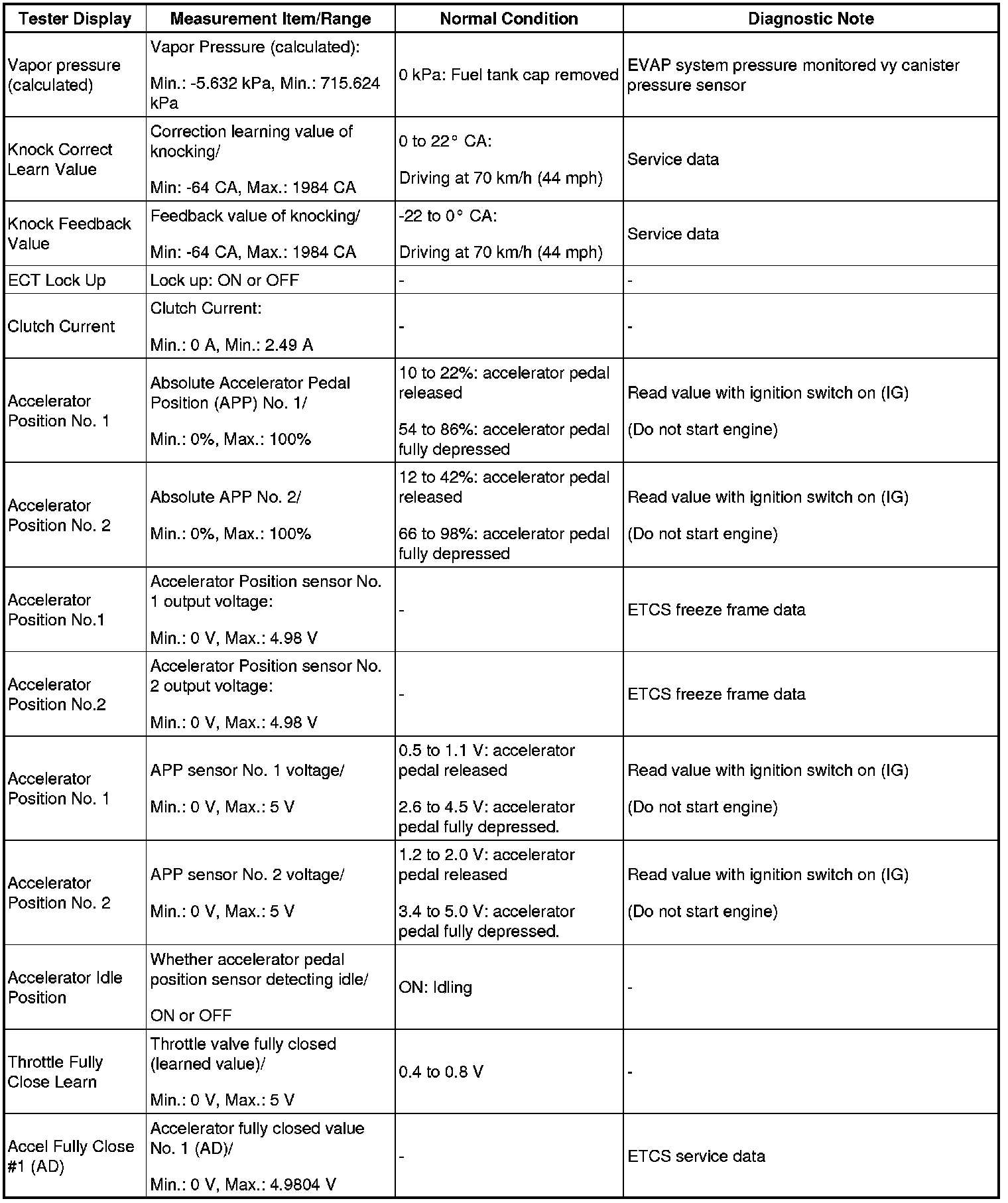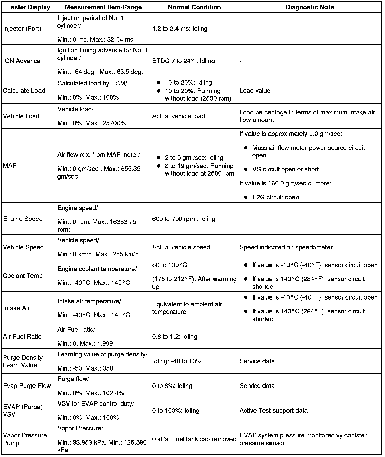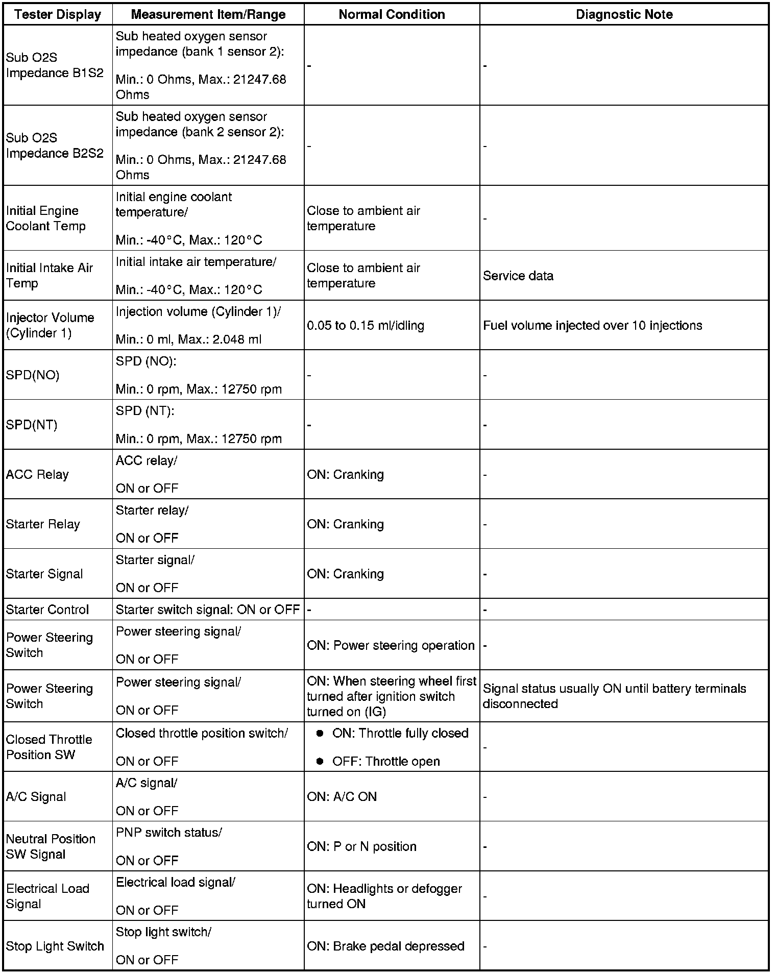 HINT: By reading the Data List displayed on the Techstream, you can check values, including those of the switches, sensors, and actuators, without removing any parts. Reading the Data List as the first step in troubleshooting is one method of shortening diagnostic time.