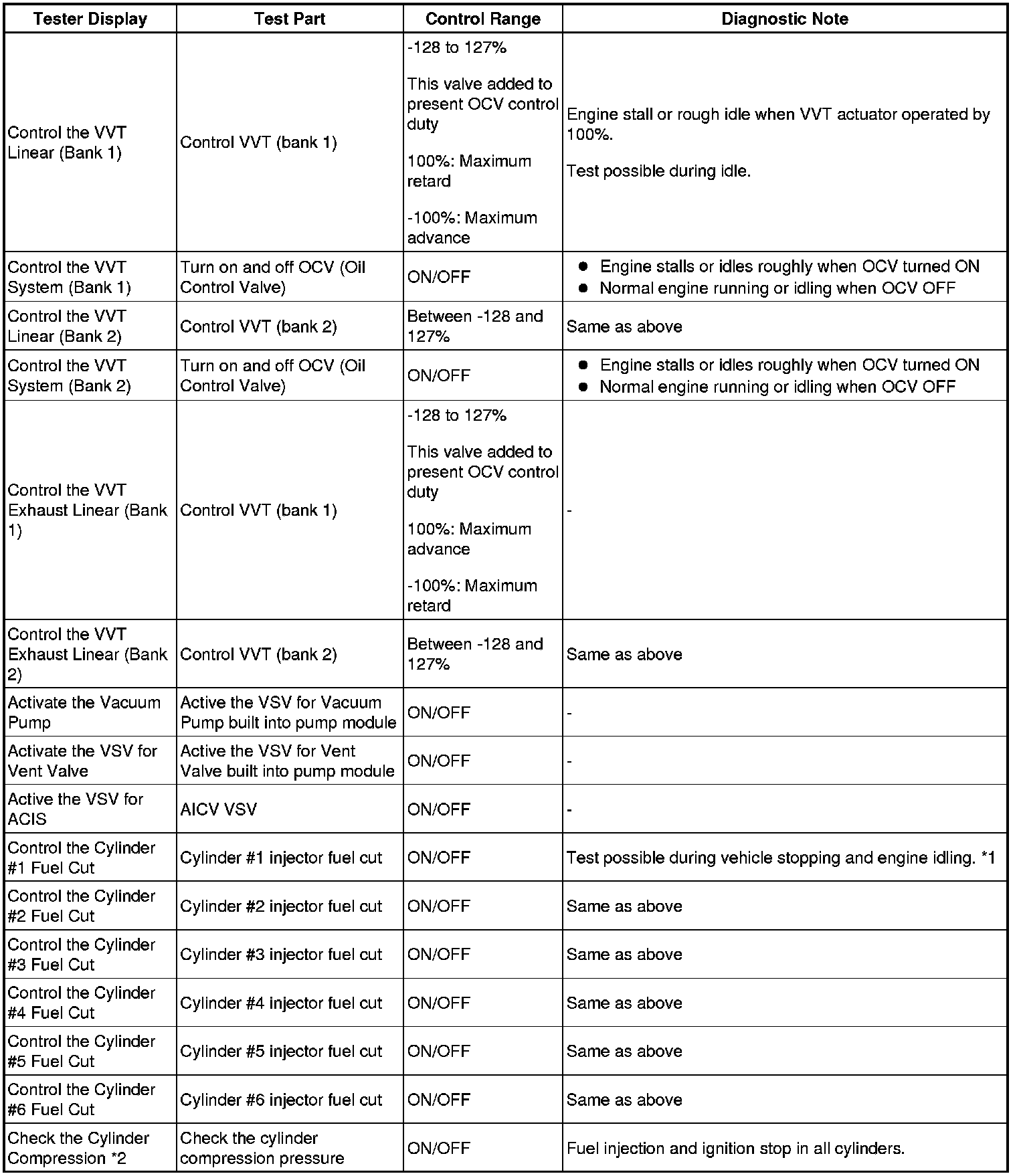 - *1: Data List values are displayed only when performing the following Active Test: Control the VVT Linear (Bank 1 or Bank 2) or Control the VVT Exhaust Linear (Bank 1 or Bank 2). For other Active Test, the Data List value will be 0.