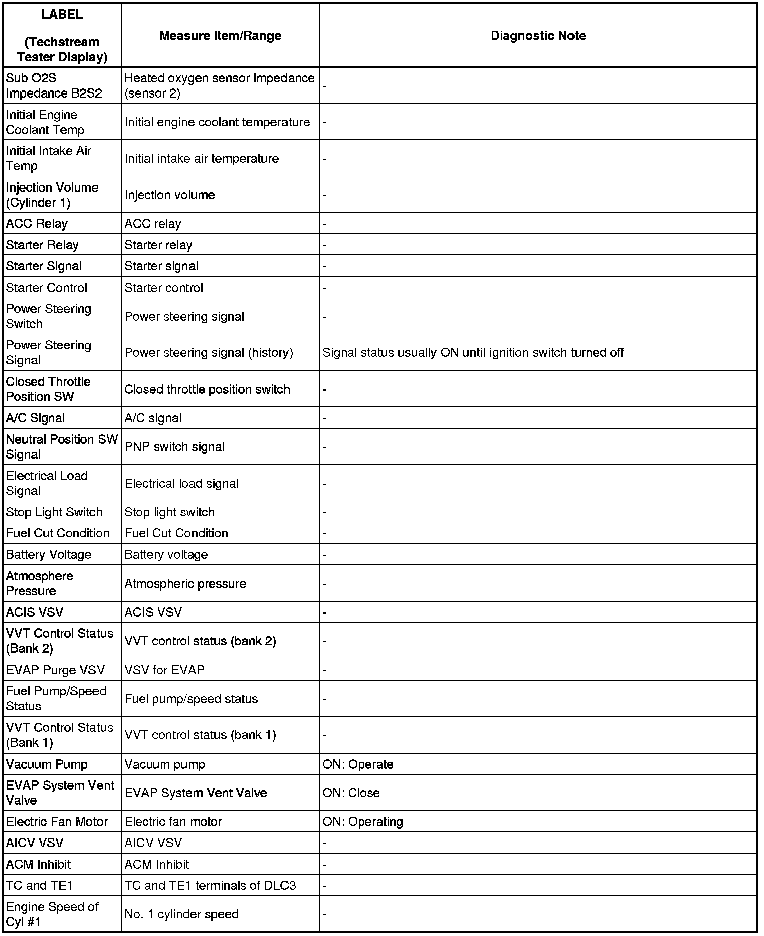 2GR-FE ENGINE CONTROL SYSTEM: SFI SYSTEM: FREEZE FRAME DATA