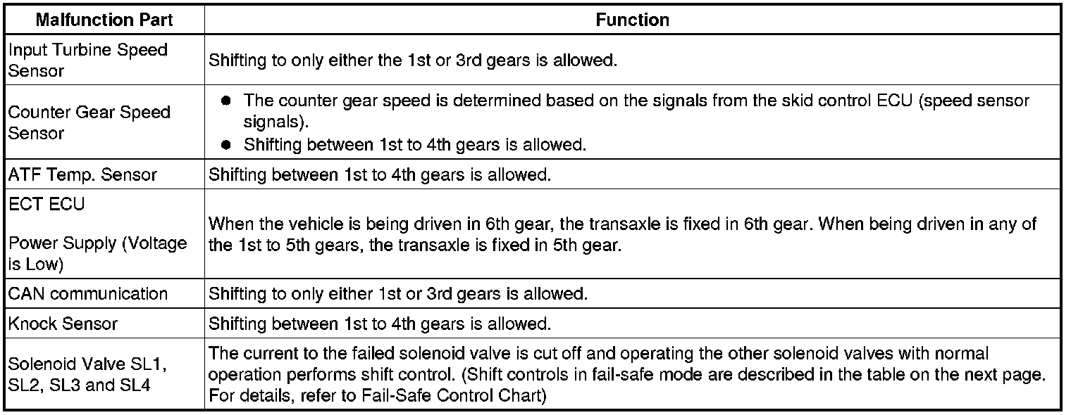 U660E AUTOMATIC TRANSAXLE: AUTOMATIC TRANSAXLE SYSTEM: FAIL-SAFE CHART