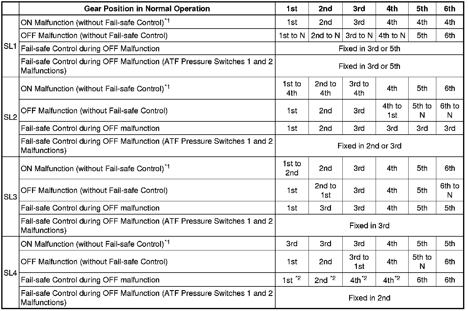 *1: Fail-safe control is not actuated when the ON malfunction occurs.