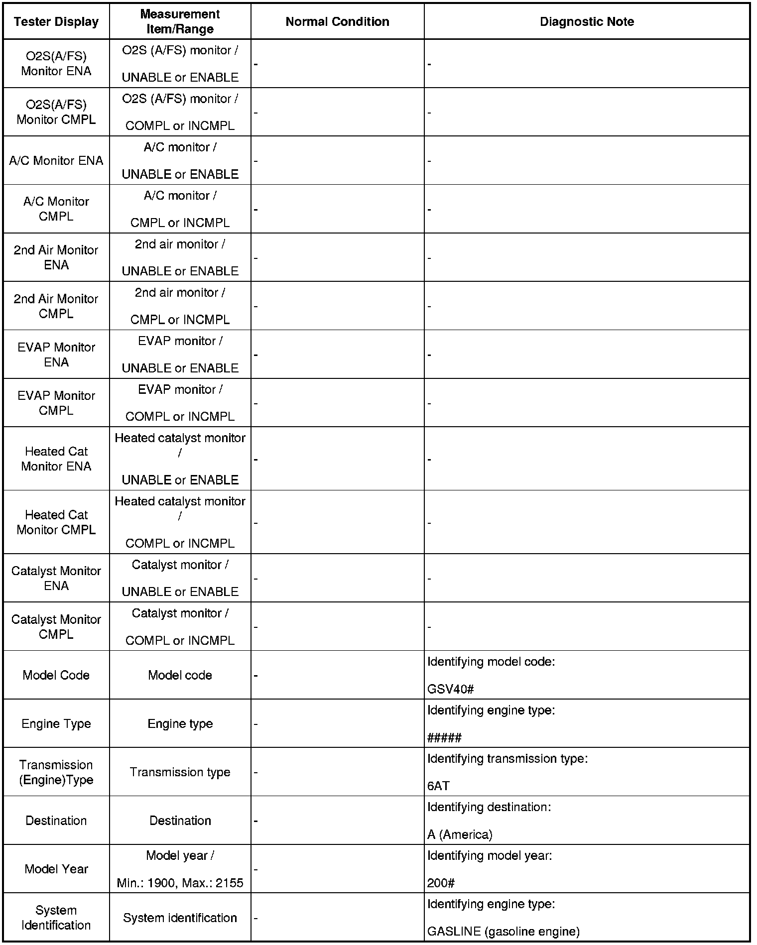 HINT: Using Techstream to read the Data List allows the values or states of switches, sensors, actuators and other items to be read without removing any parts. This non-intrusive inspection can be very useful because intermittent conditions or signals may be discovered before parts or wiring is disturbed. Reading the Data List information early in troubleshooting is one way to save diagnostic time.