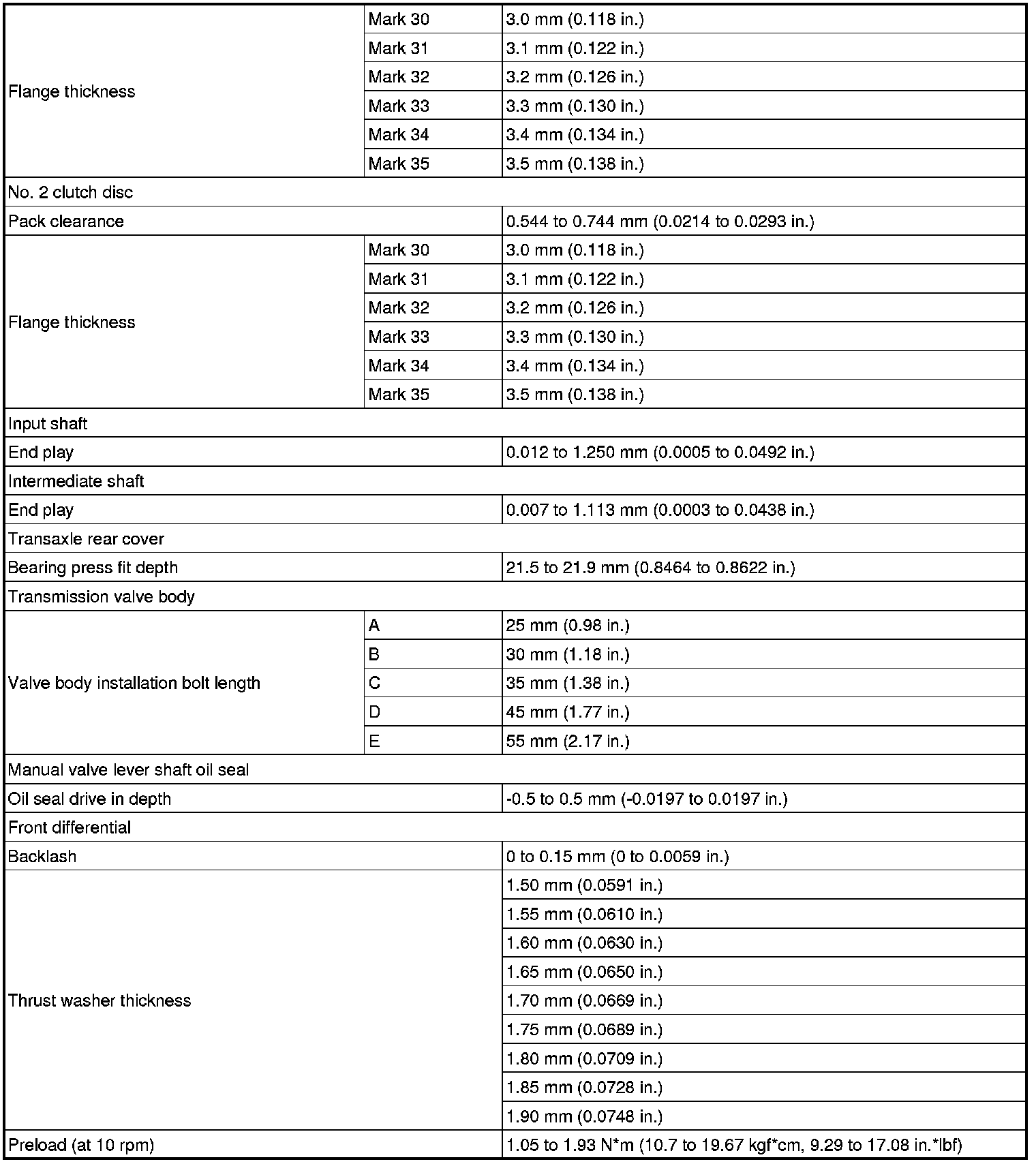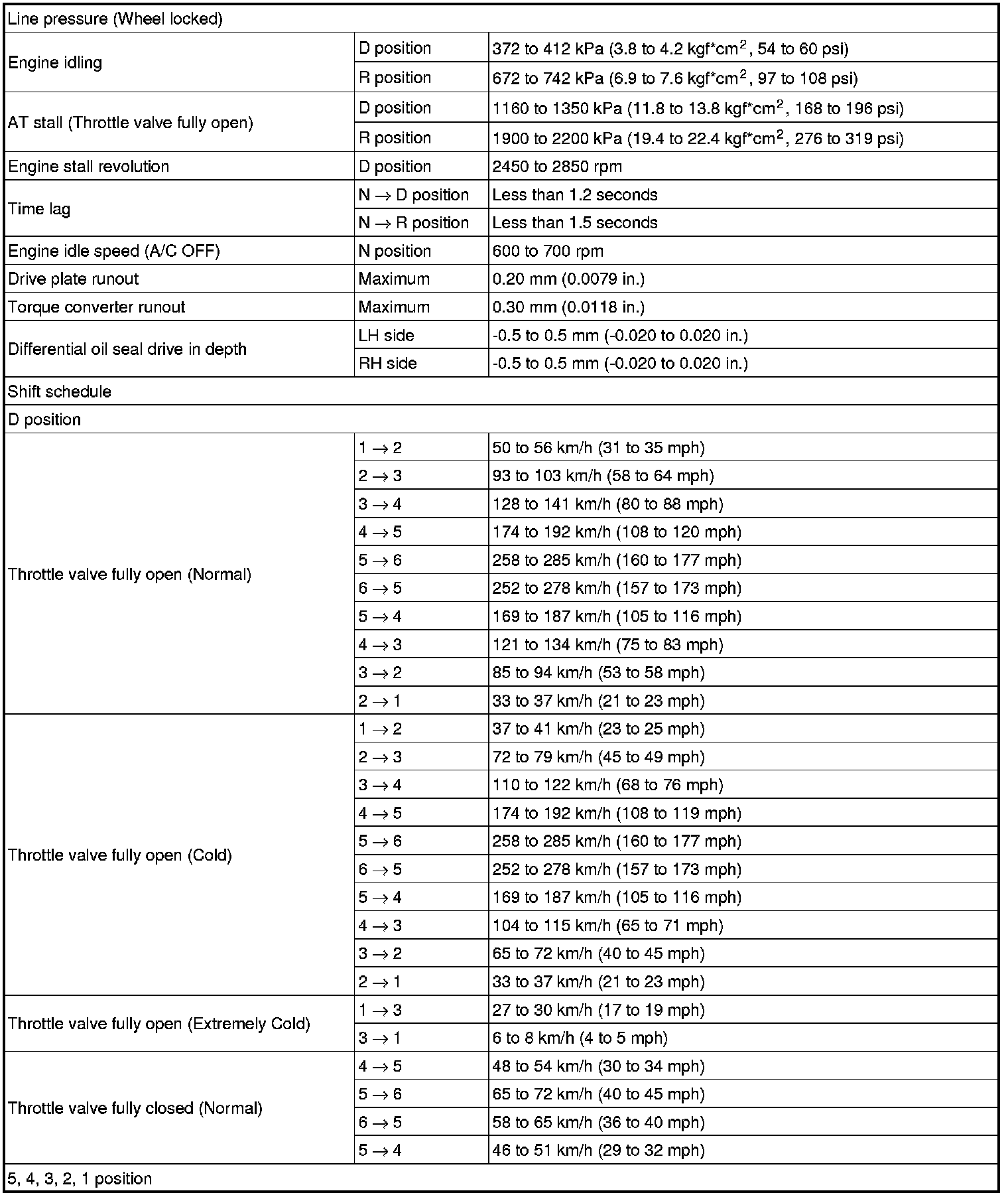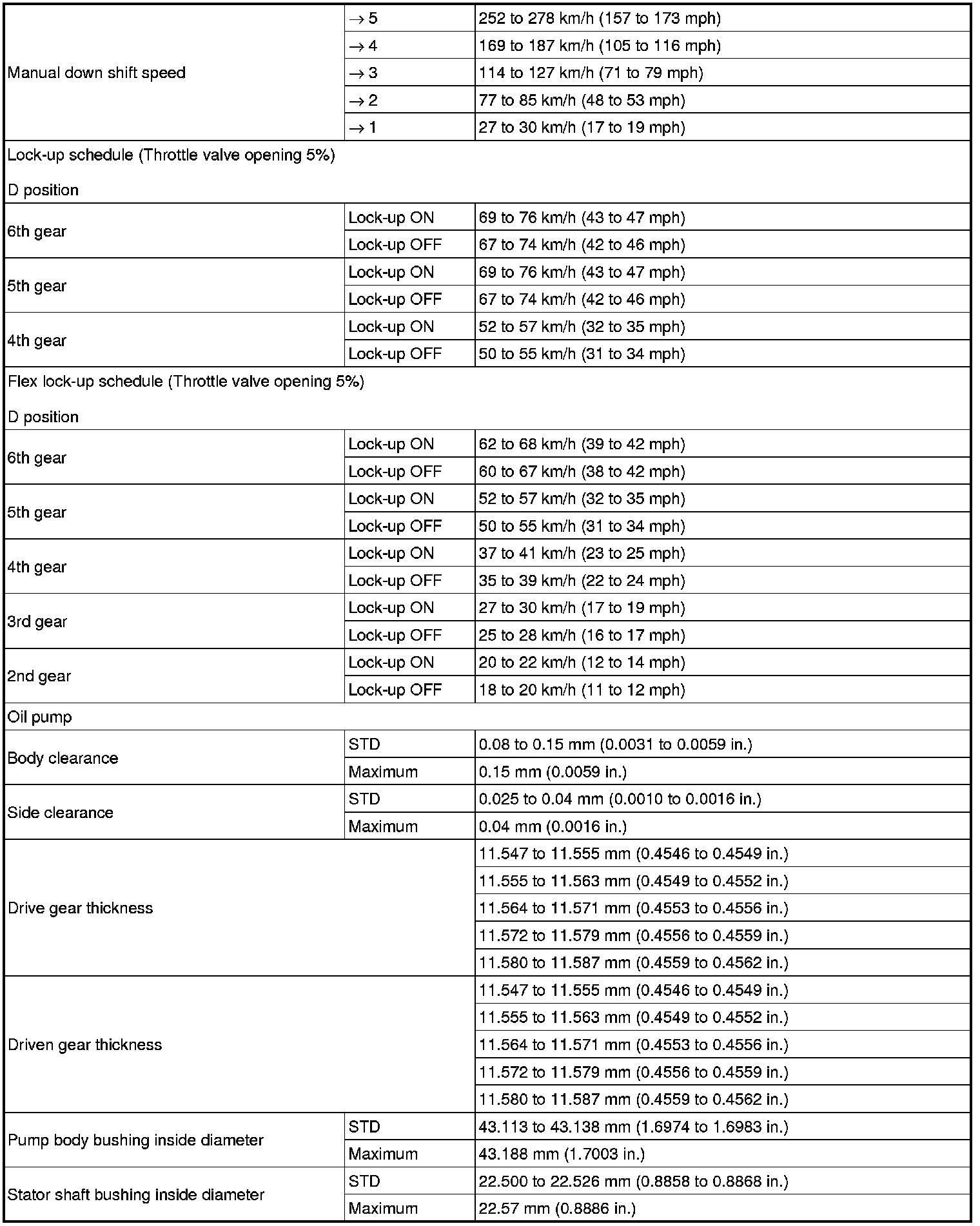 SERVICE SPECIFICATIONS: U660E AUTOMATIC TRANSAXLE: SERVICE DATA