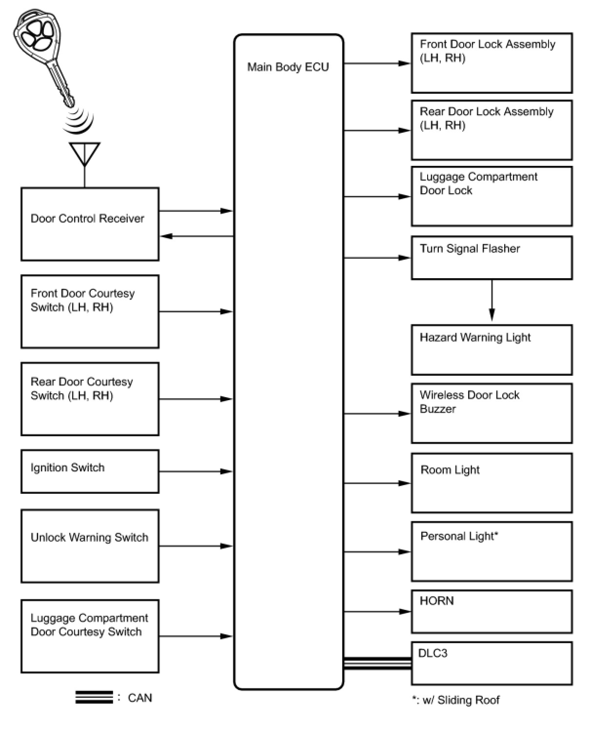 DOOR LOCK: WIRELESS DOOR LOCK CONTROL SYSTEM (w/o Smart Key System): SYSTEM DIAGRAM
