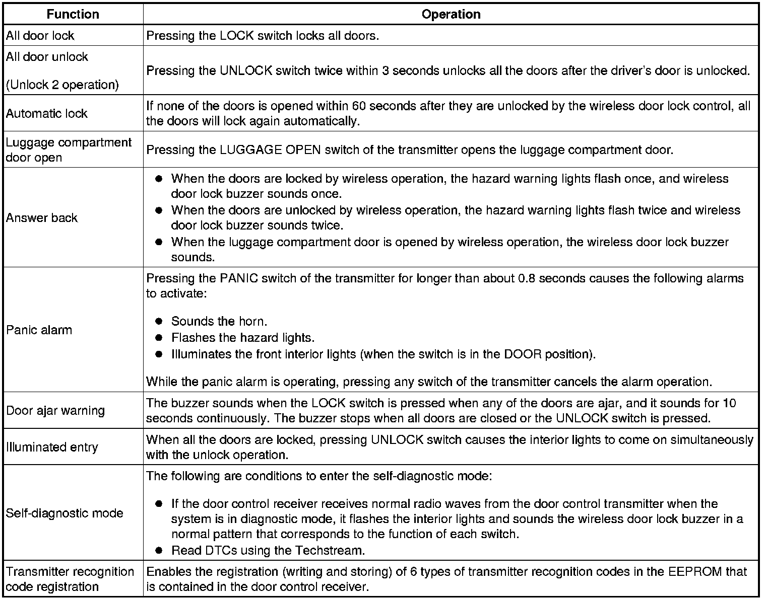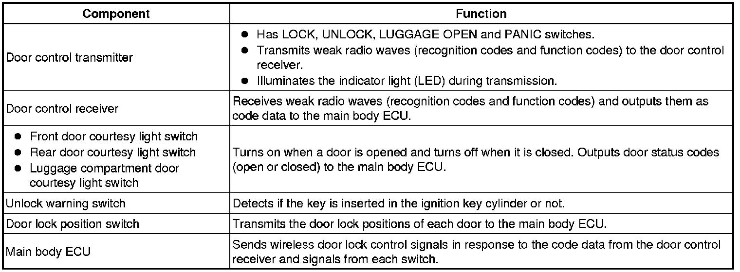 DOOR LOCK: WIRELESS DOOR LOCK CONTROL SYSTEM (w/o Smart Key System): SYSTEM DESCRIPTION