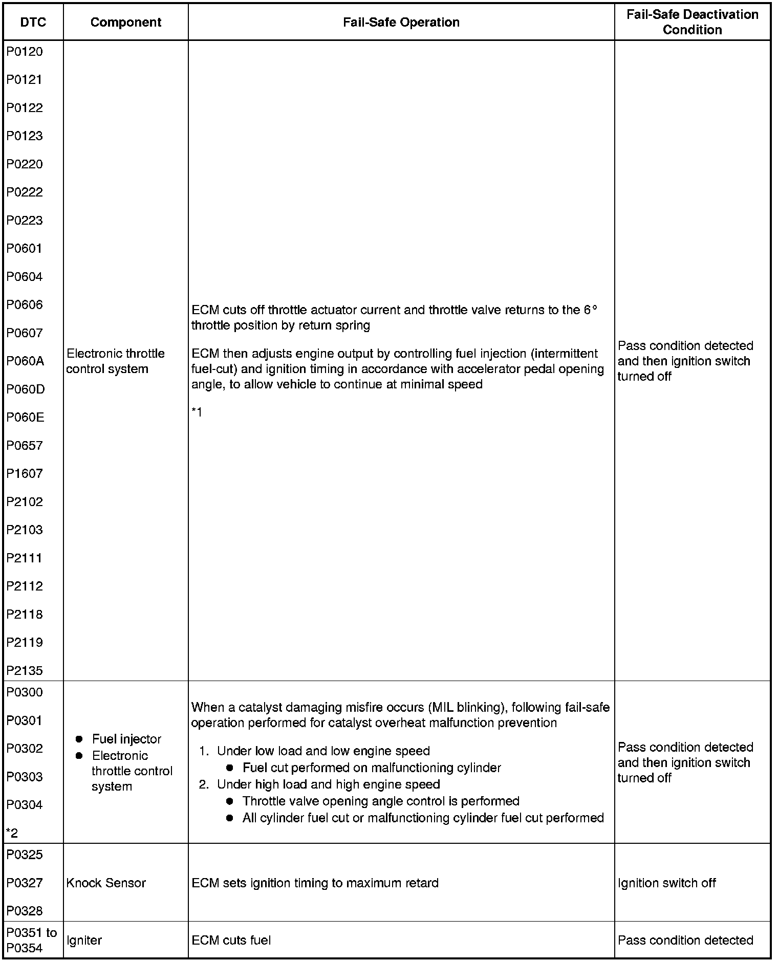 - *2: Misfire related fail-safe operations occur when catalyst overheat malfunctions occur.