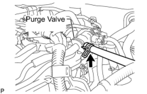 (b) Disconnect the vacuum hose from the purge valve as shown in the illustration.
