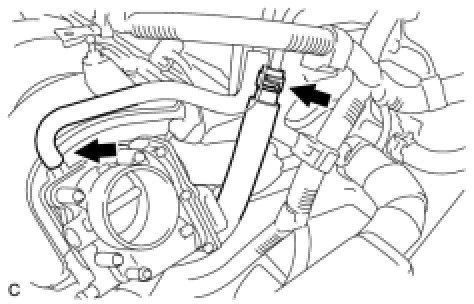 (a) Disconnect the throttle body connector and the 2 water by-pass hoses.