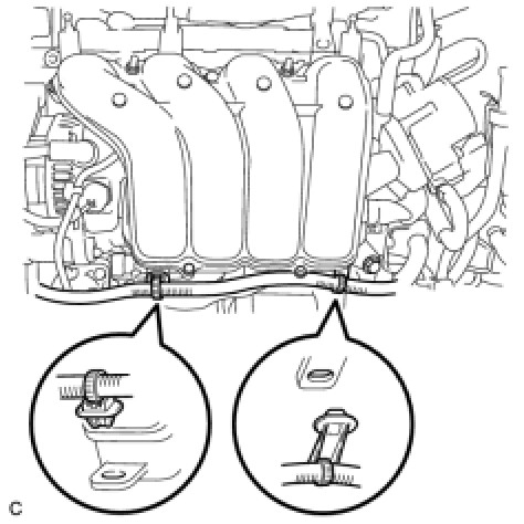 (b) Separate the wire harness clamp and remove the bolt and wire harness bracket.