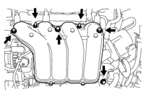 (g) Remove the 4 bolts and 2 nuts and remove the intake manifold stay and intake manifold with throttle body.