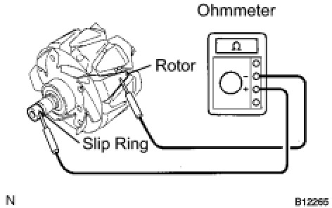 (1) Using an ohmmeter, measure the resistance between the slip rings.