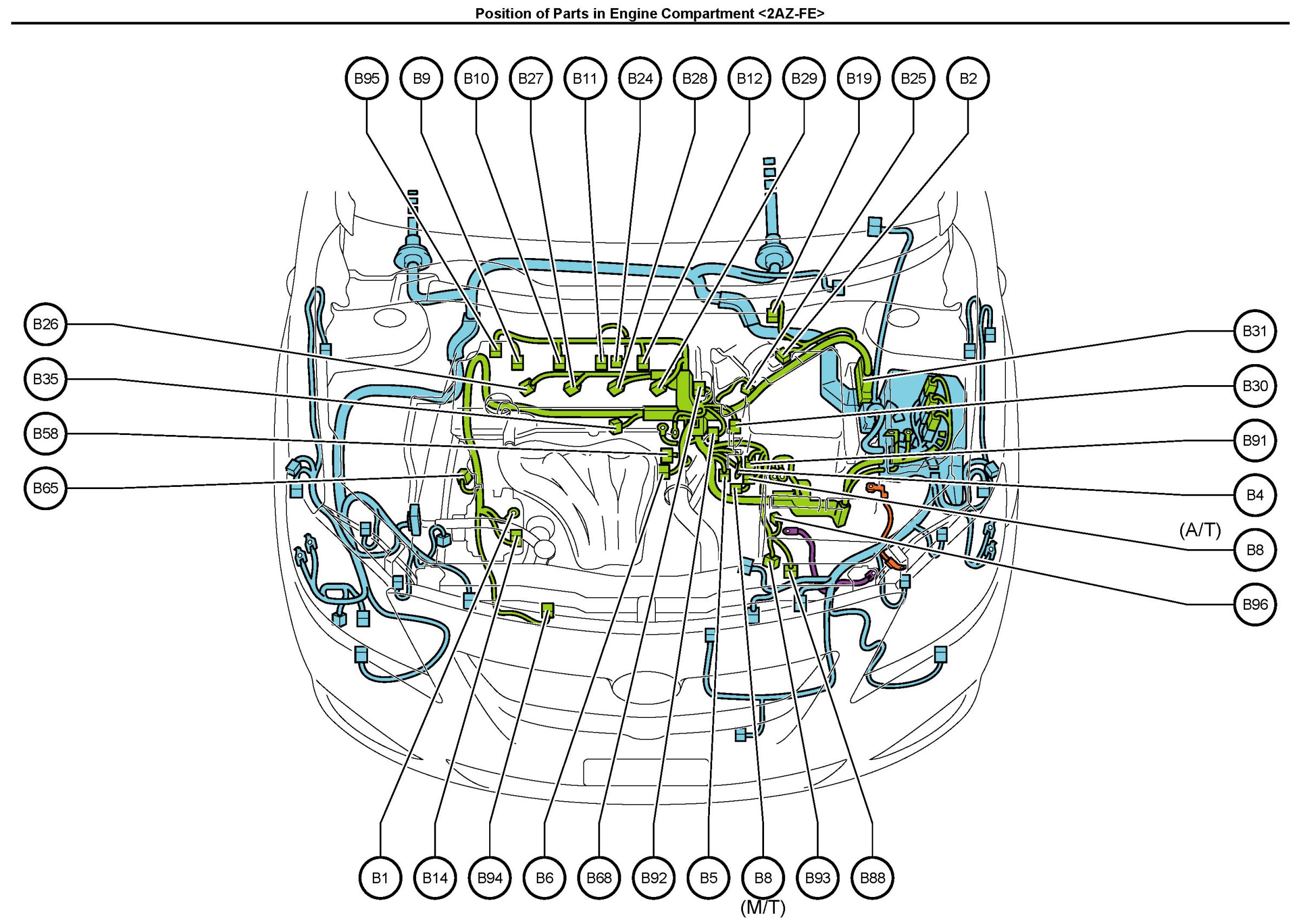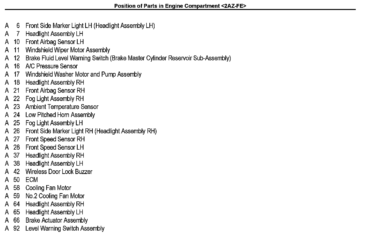 Position of Parts In Engine Compartment