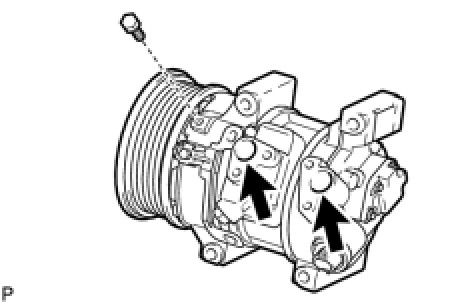 (b) Apply sufficient compressor oil to a new O-ring and the fitting surface of the compressor assembly with pulley.