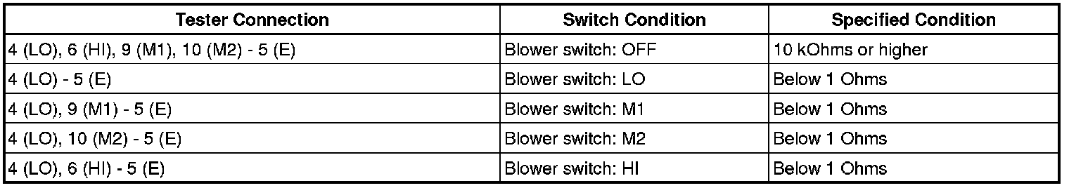 If the resistance is not as specified, replace the No. 2 heater control (blower switch).