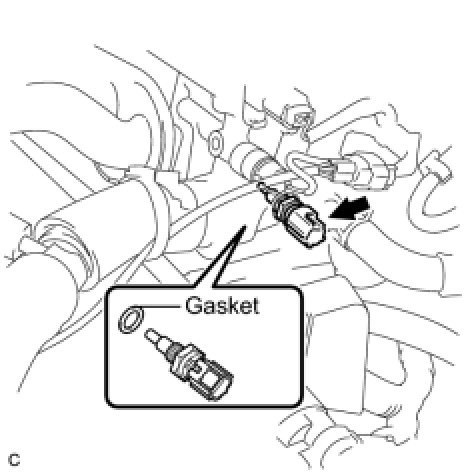 (b) Remove the engine coolant temperature sensor and gasket.