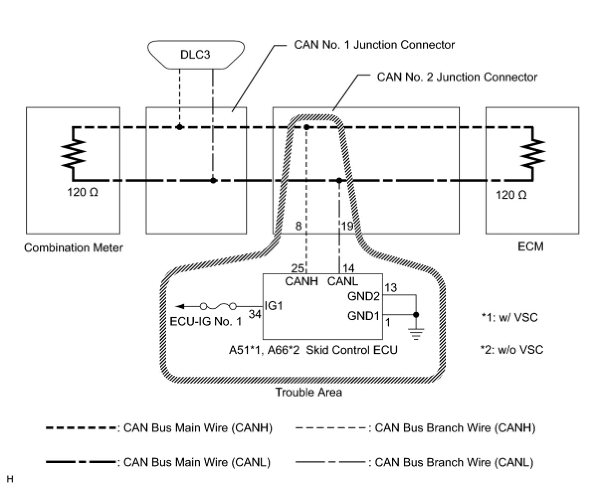 1. CHECK CAN BUS WIRE FOR DISCONNECTION (SKID CONTROL ECU BRANCH WIRE)