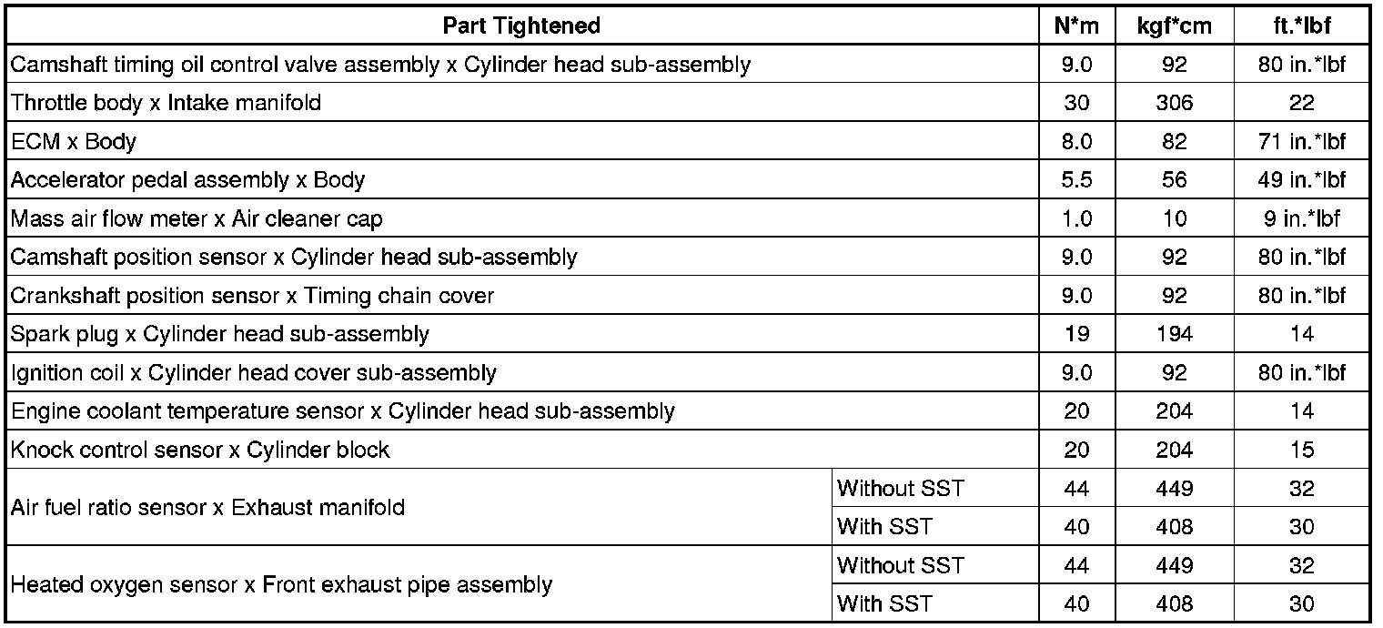 SPECIFICATIONS: 2AZ-FE ENGINE CONTROL: TORQUE SPECIFICATIONS